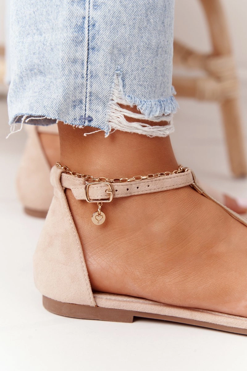 Eleganckie Zamszowe Sandały S.Barski 541-7 Beżowe