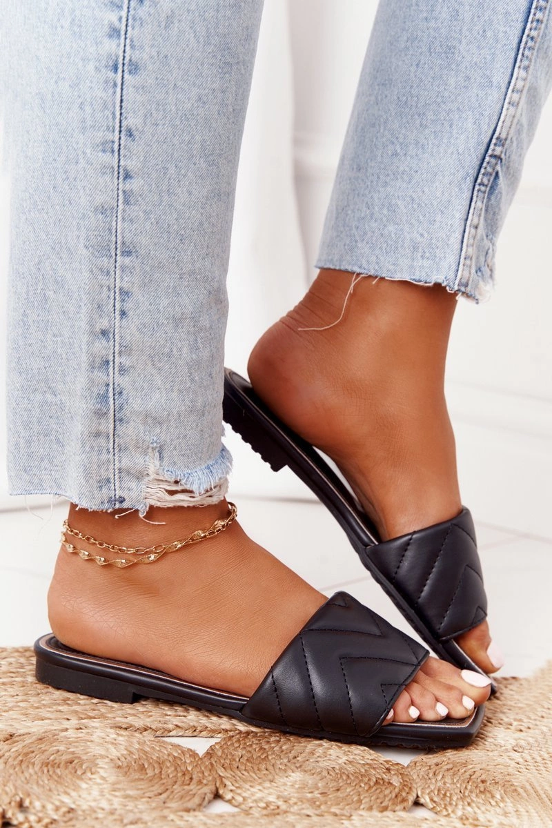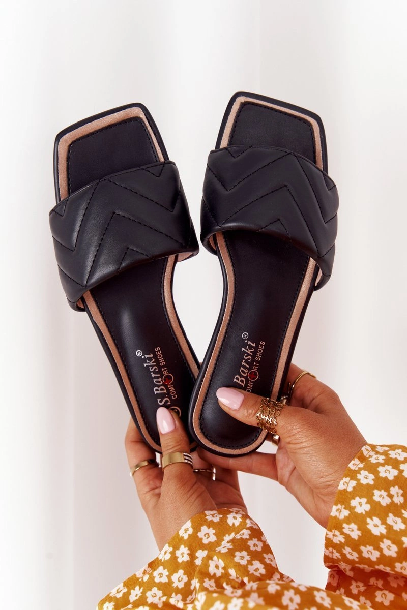 Skórzane Klapki Z Pikowaniem S.Barski 331-42 Czarne