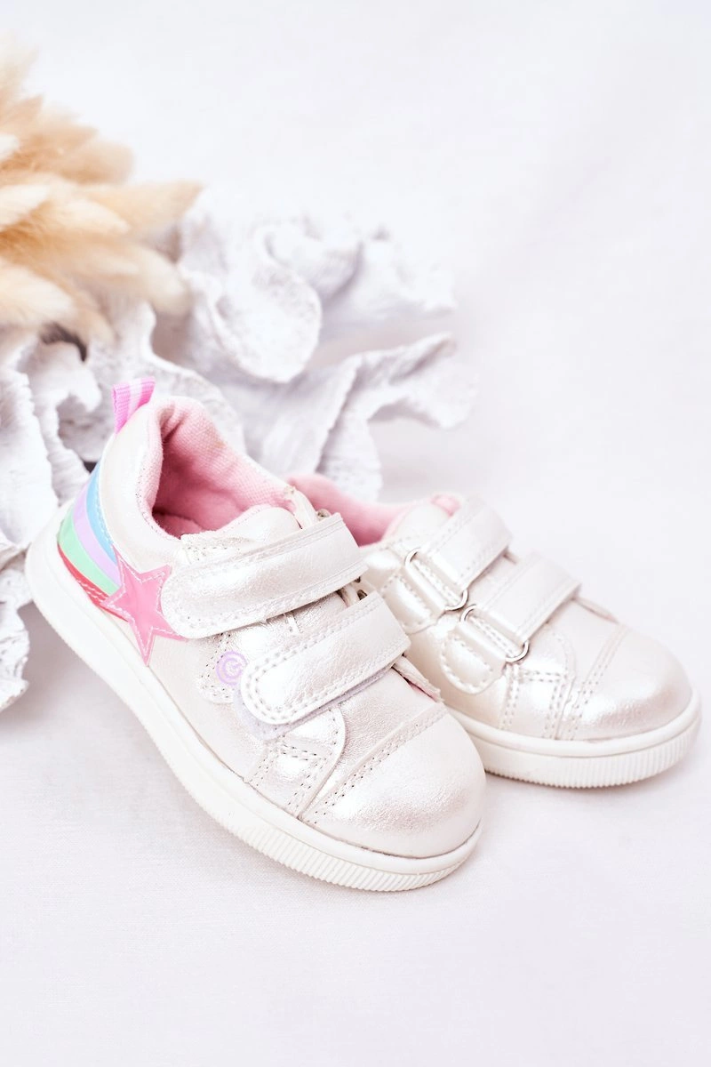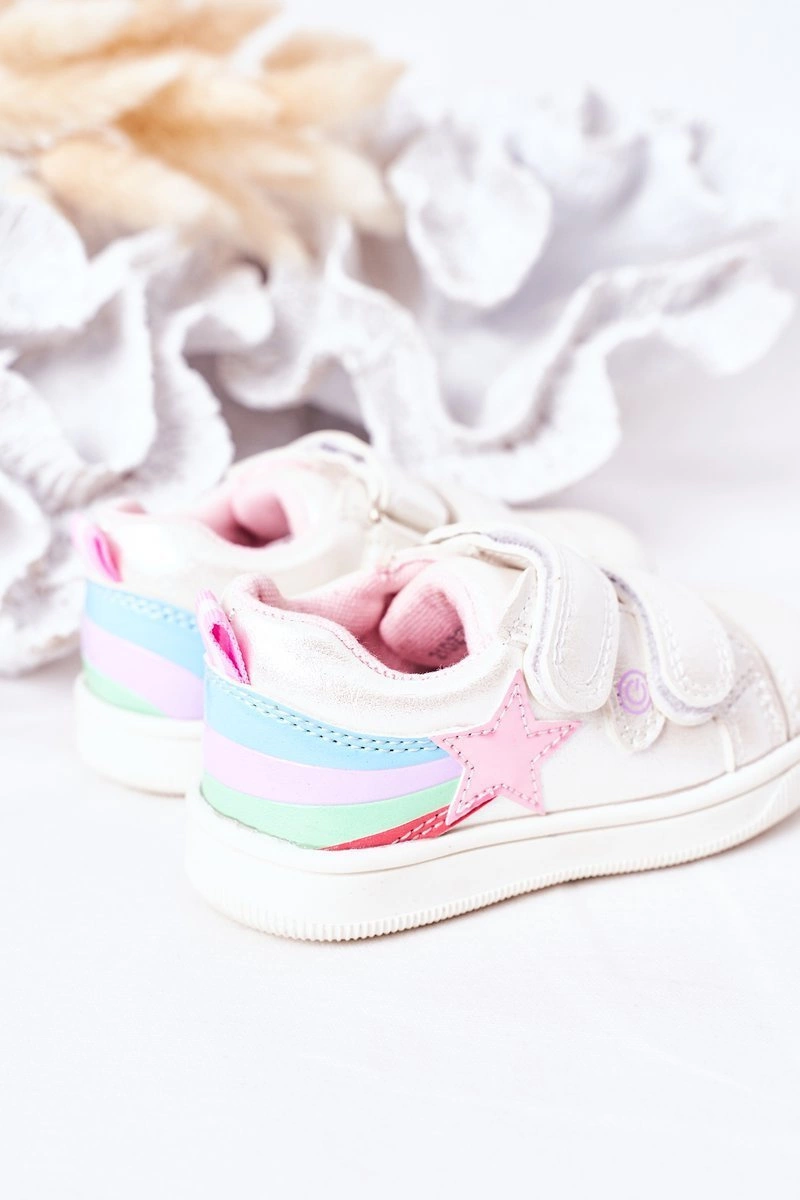 Dziecięce Skórzane Sportowe Buty Z Tęczą Białe Jasmine