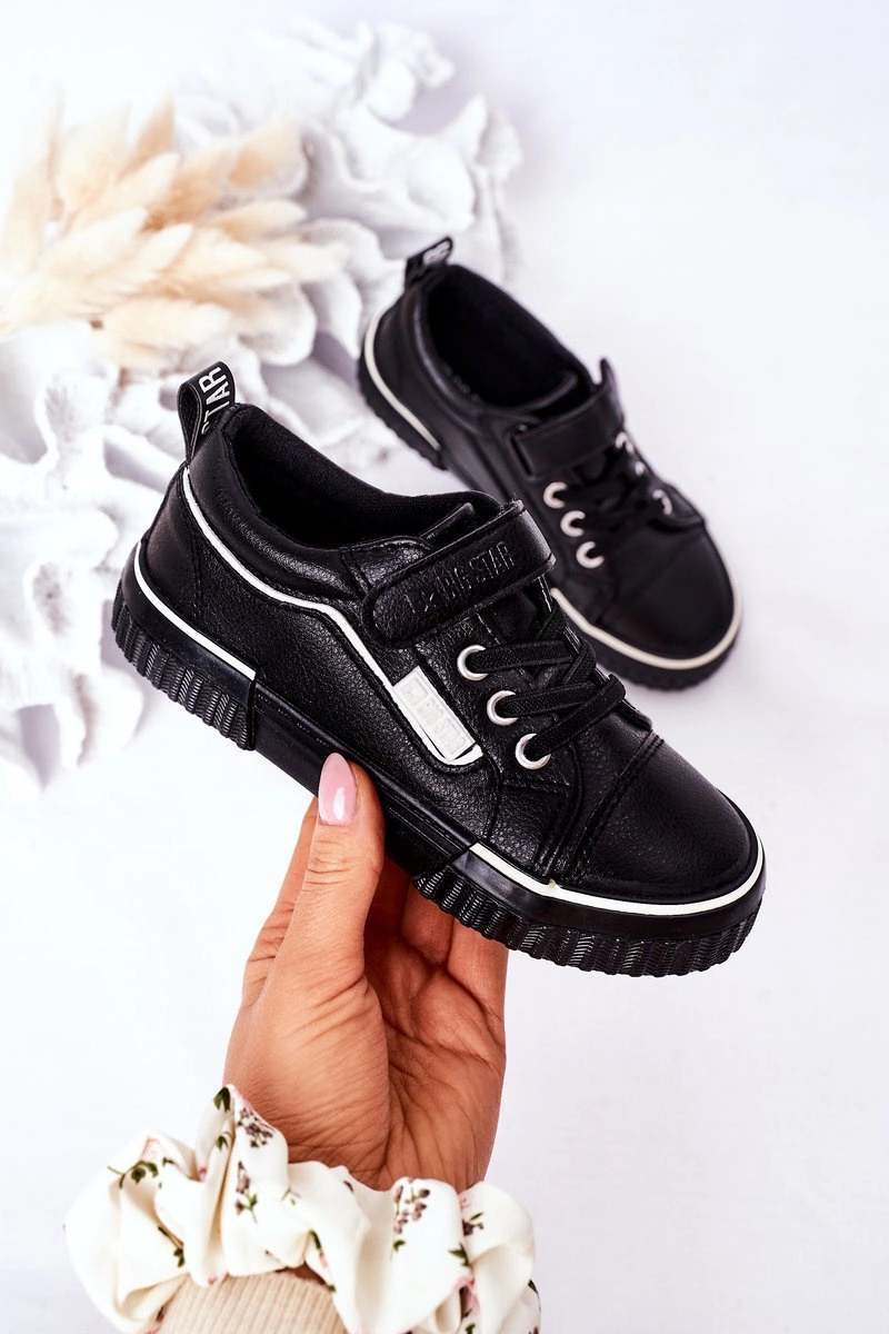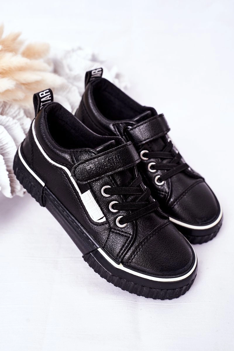 Dziecięce Skórzane Trampki Na Rzep BIG STAR HH374029 Czarne