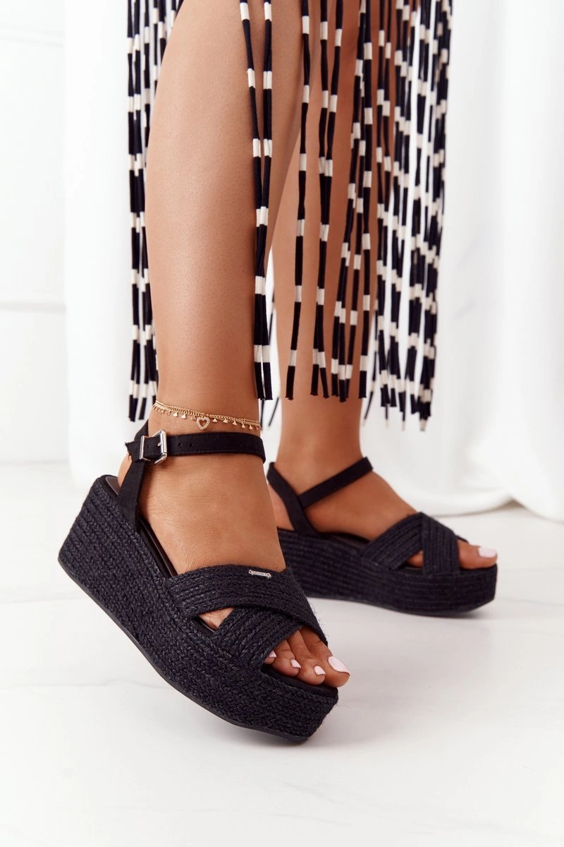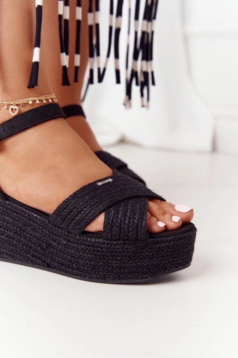 Sandały Na Koturnie Z Plecionką Big Star FF274762 Czarne