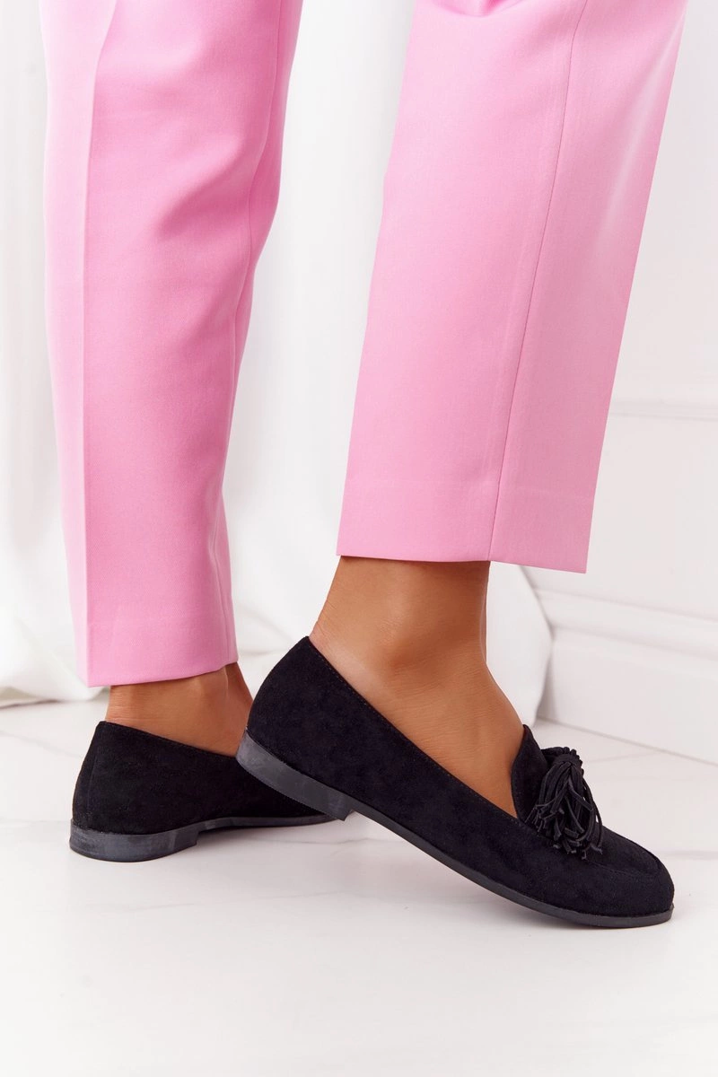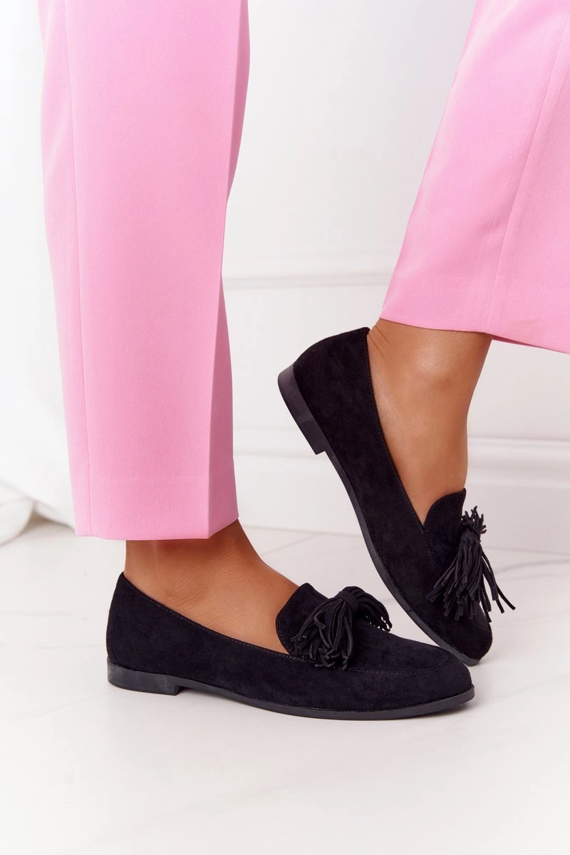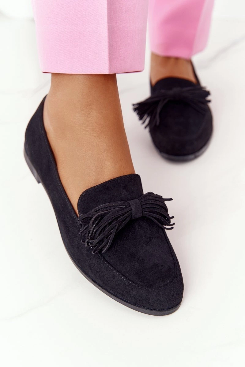 Zamszowe Mokasyny Z Frędzlami Czarne Alicante