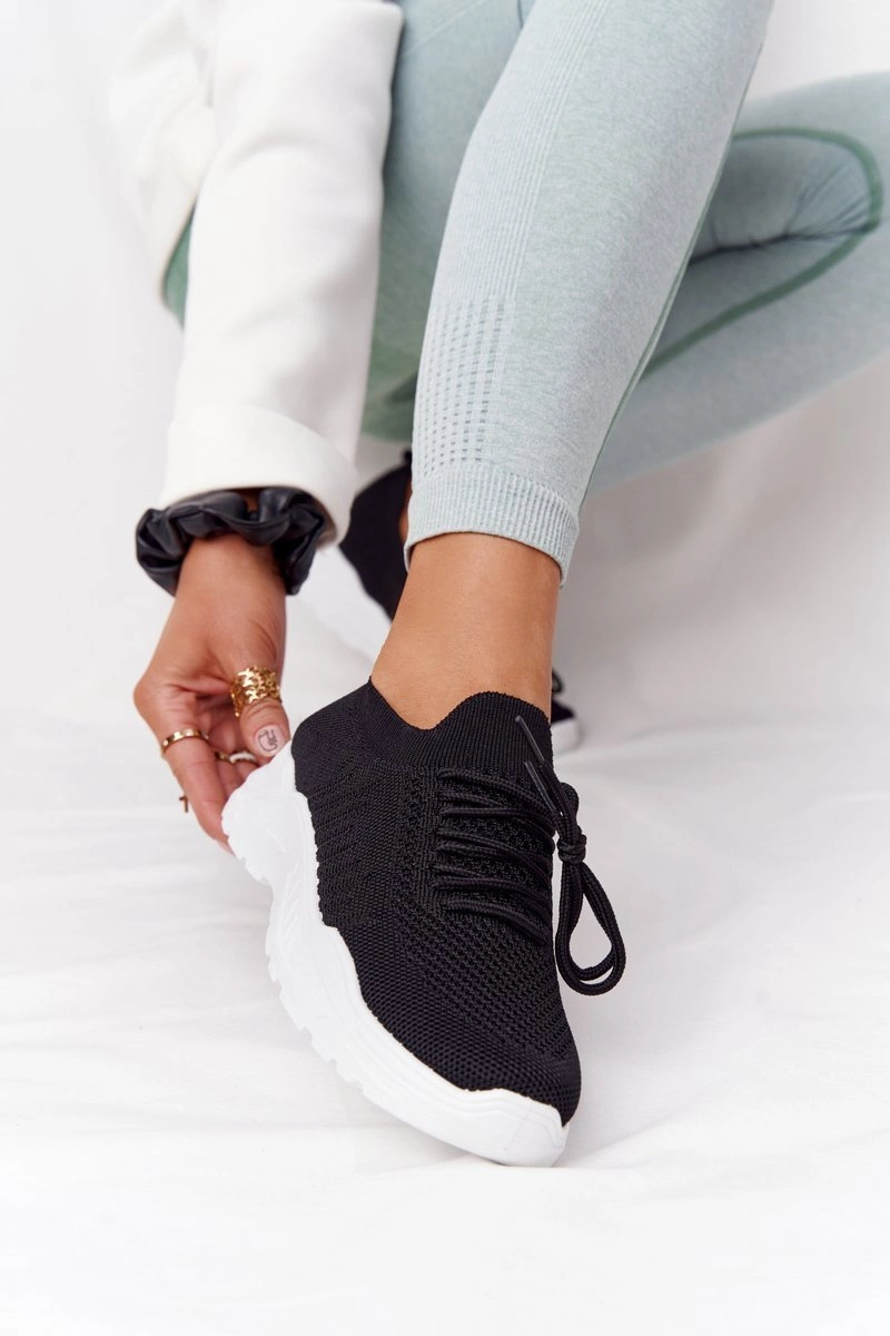 Damskie Sportowe Buty Sneakersy Czarne Z Białą Podeszwą Ruler