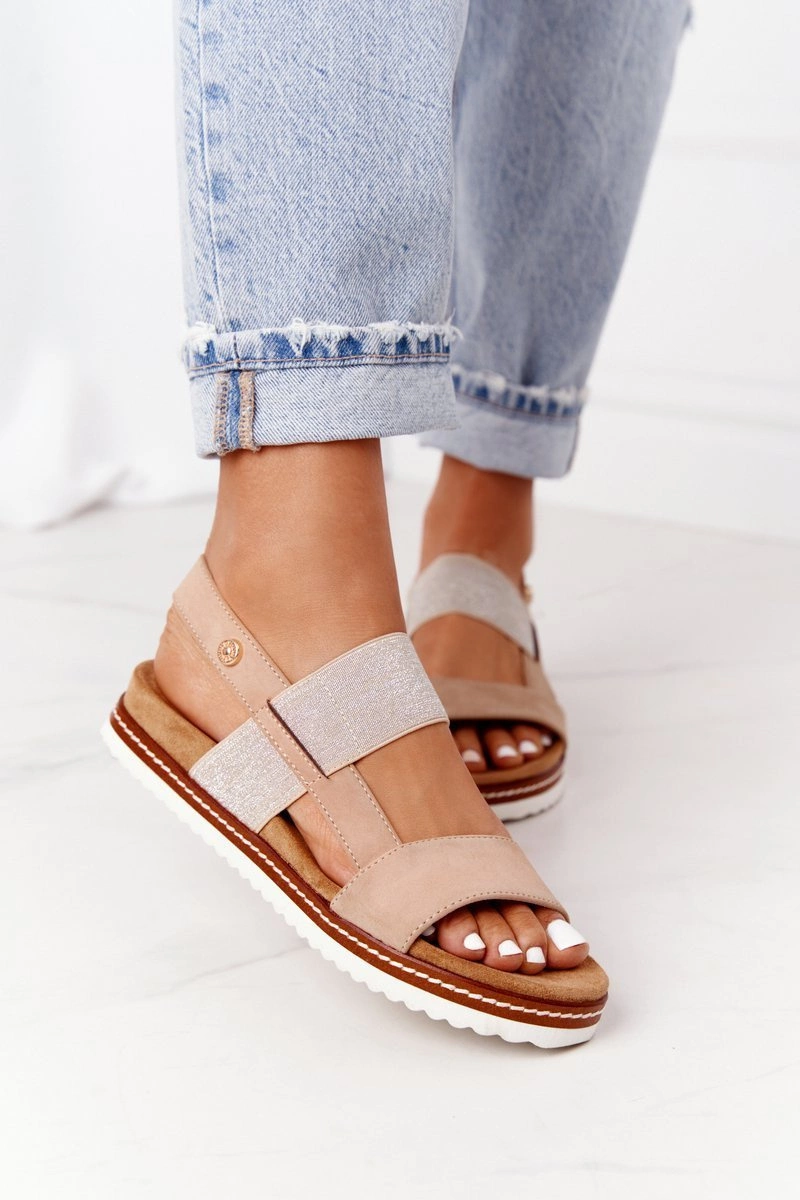 Sandały Ze Srebrnym Ściągaczem Beżowe Almeria