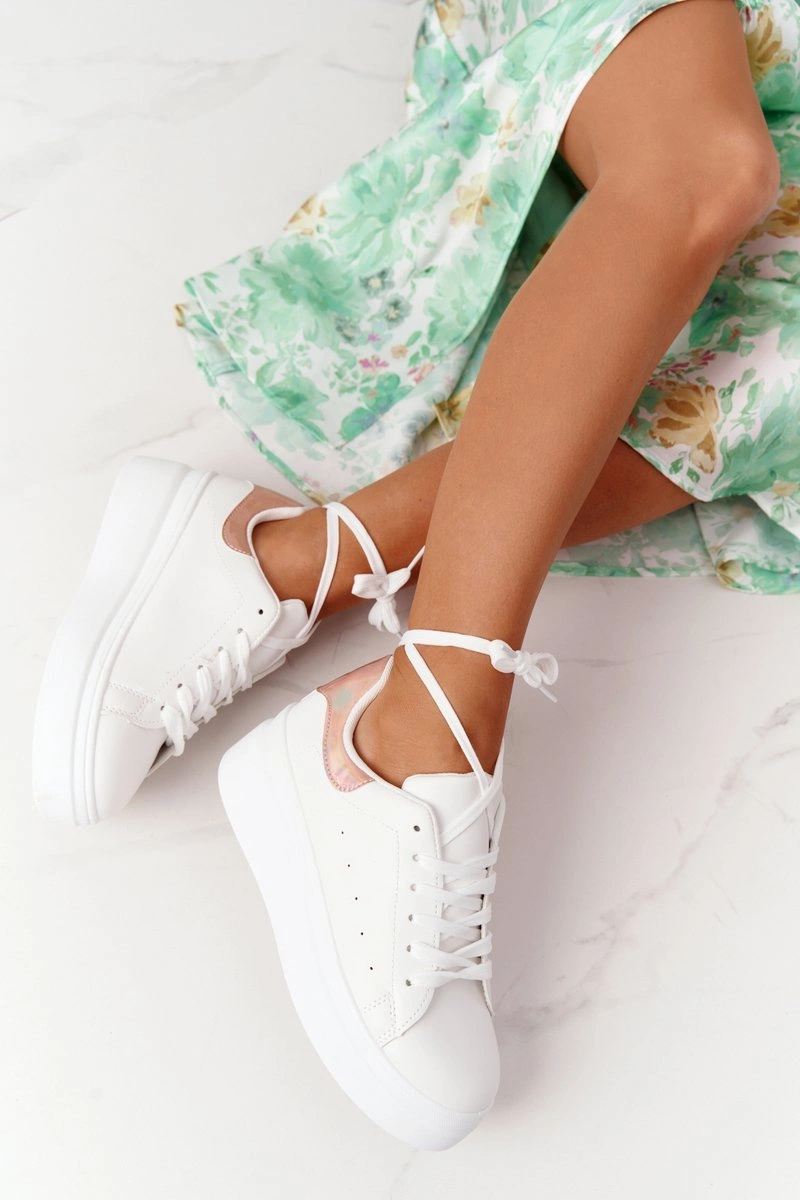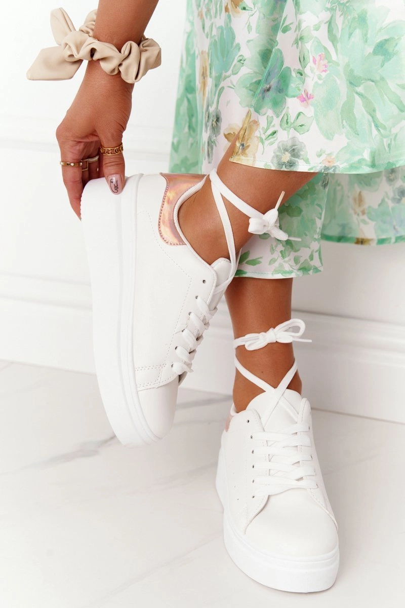 Sportowe Buty Sneakersy Na Platformie Biało-Złote Shine Bright