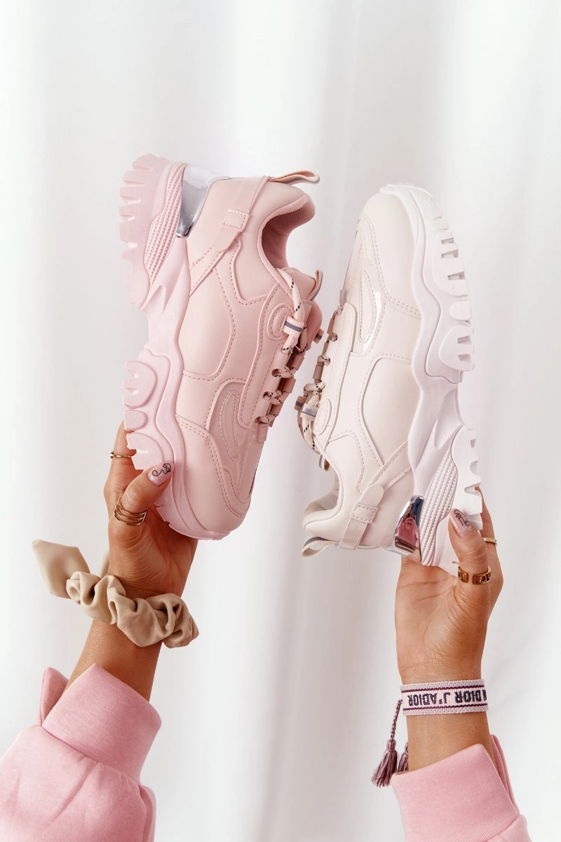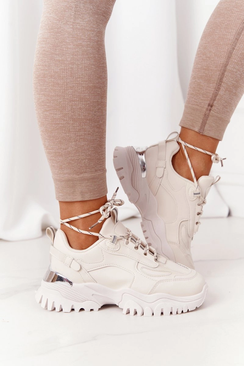 Damskie Sneakersy Na Masywnej Podeszwie Beżowe Influencer