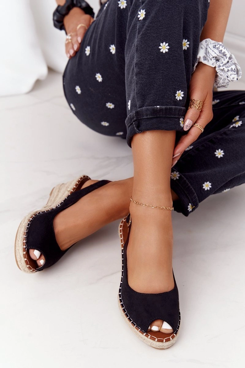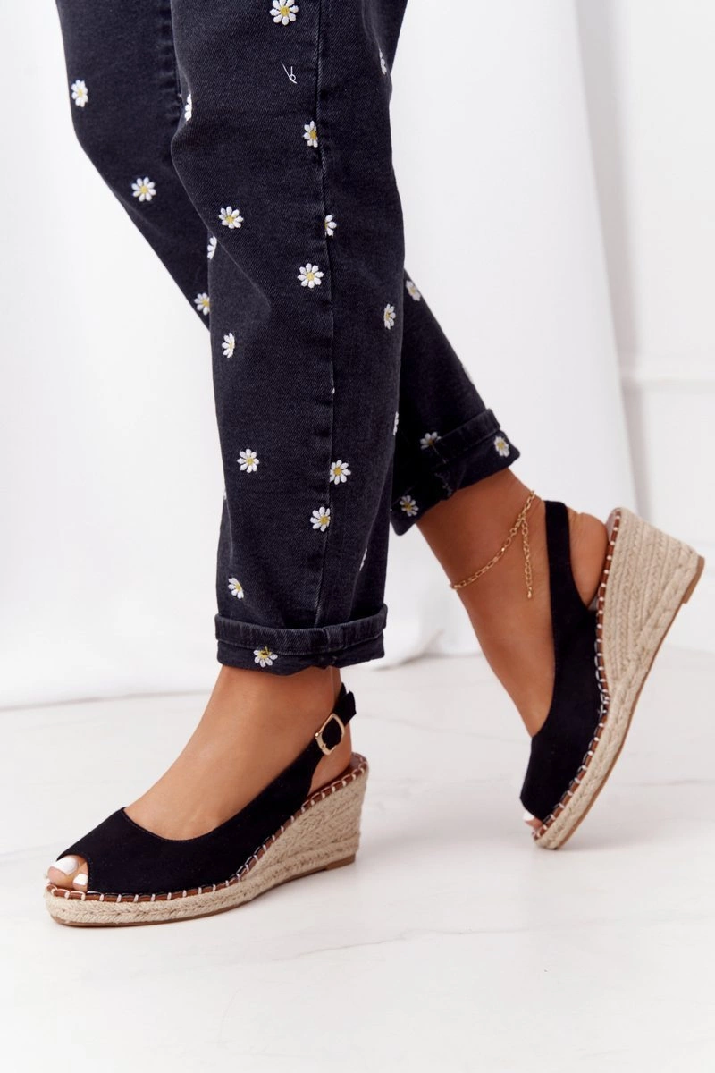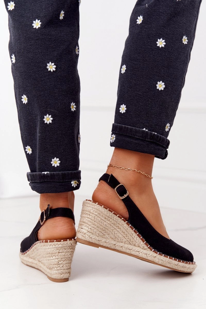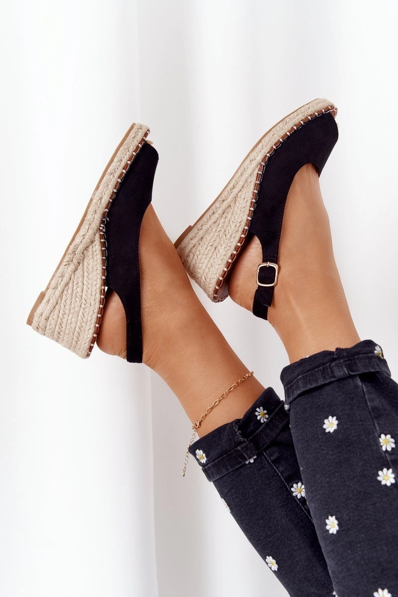 Sandały Na Koturnie Z Plecionką Czarne Las Palomas