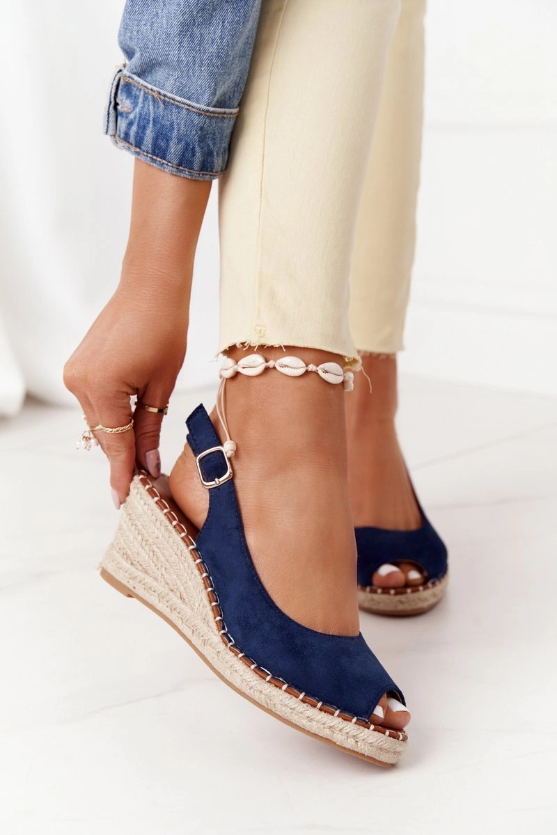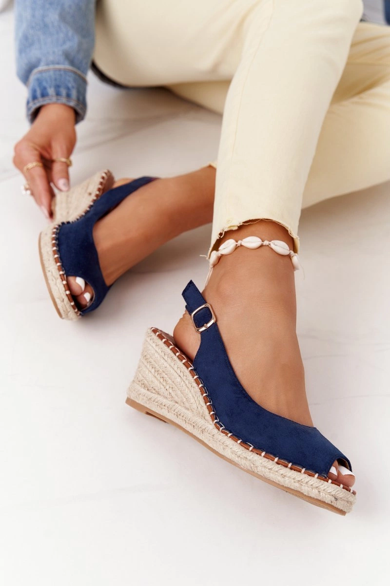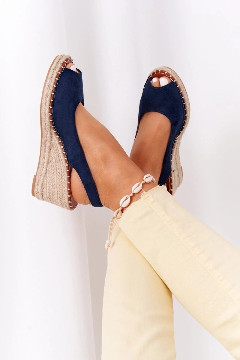Sandały Na Koturnie Z Plecionką Granatowe Las Palomas