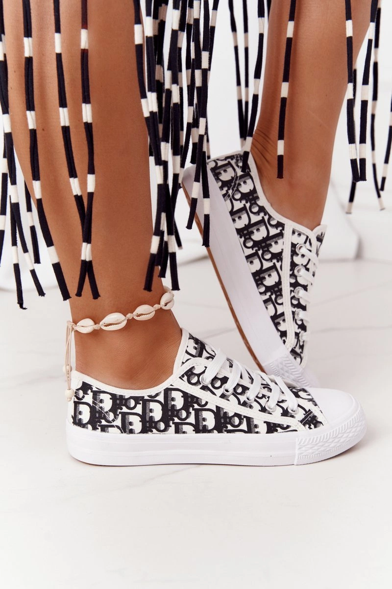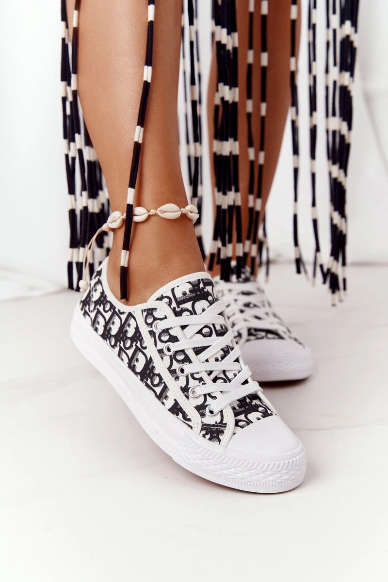 Damskie Logowane Trampki Biało-Czarne Day Off