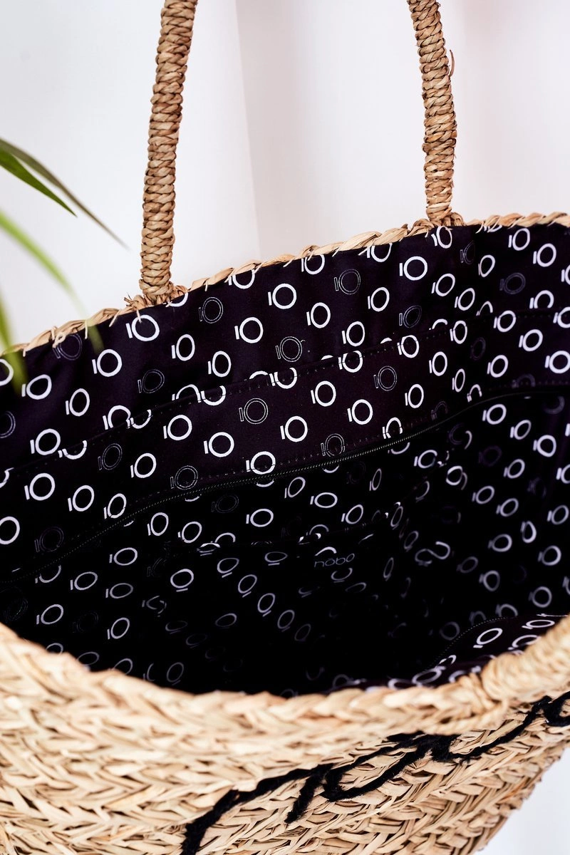 Pleciona Torebka Shopper Na Plażę NOBO XK0340 Beżowo-Czarna