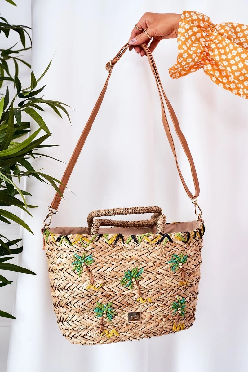 Pleciona torebka na plażę marki NOBO. Zewnętrzna część torebki wykonana jest w 90% z trawy morskiej oraz w 10% z papieru. Wnętrze torebki to 100% poliester. Torebka ma jedną komorę zapinaną na suwak. Wewnątrz znajduje się jedna kieszeń na drobiazgi. Torebka posiada odpinany, regulowany pasek z eko skóry. Koniecznie sprawdź całą naszą kolekcję torebek marki NOBO.