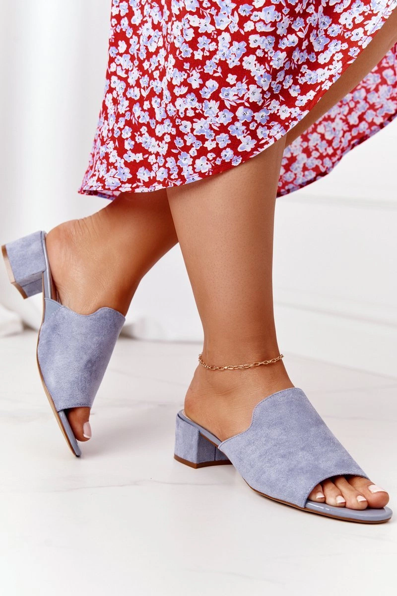 Zamszowe Klapki Na Obcasie Sergio Leone KL313 Niebieskie