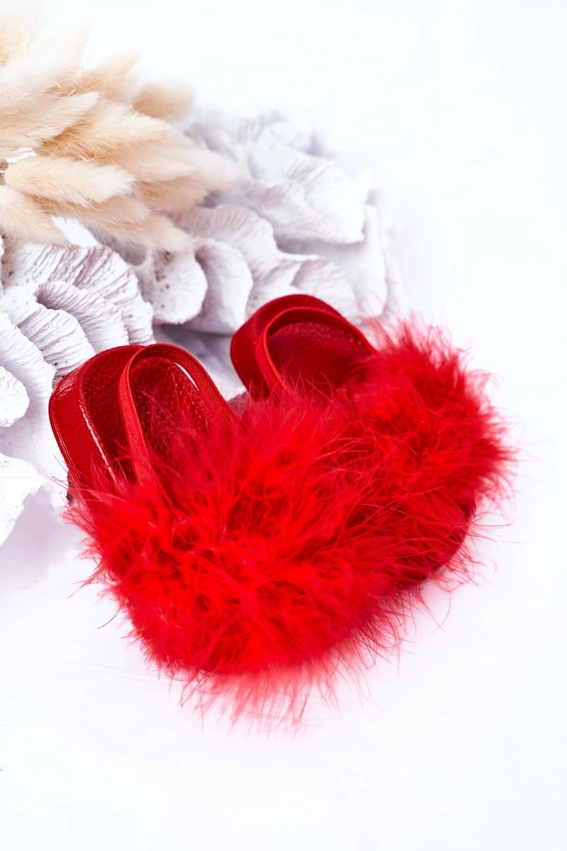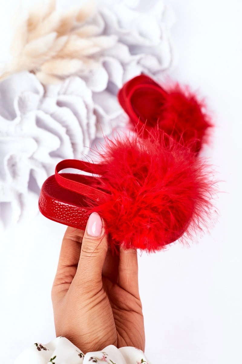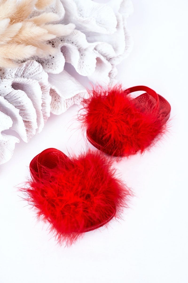 Dziecięce Gumowe Klapki Z Futerkiem Czerwone Skylar