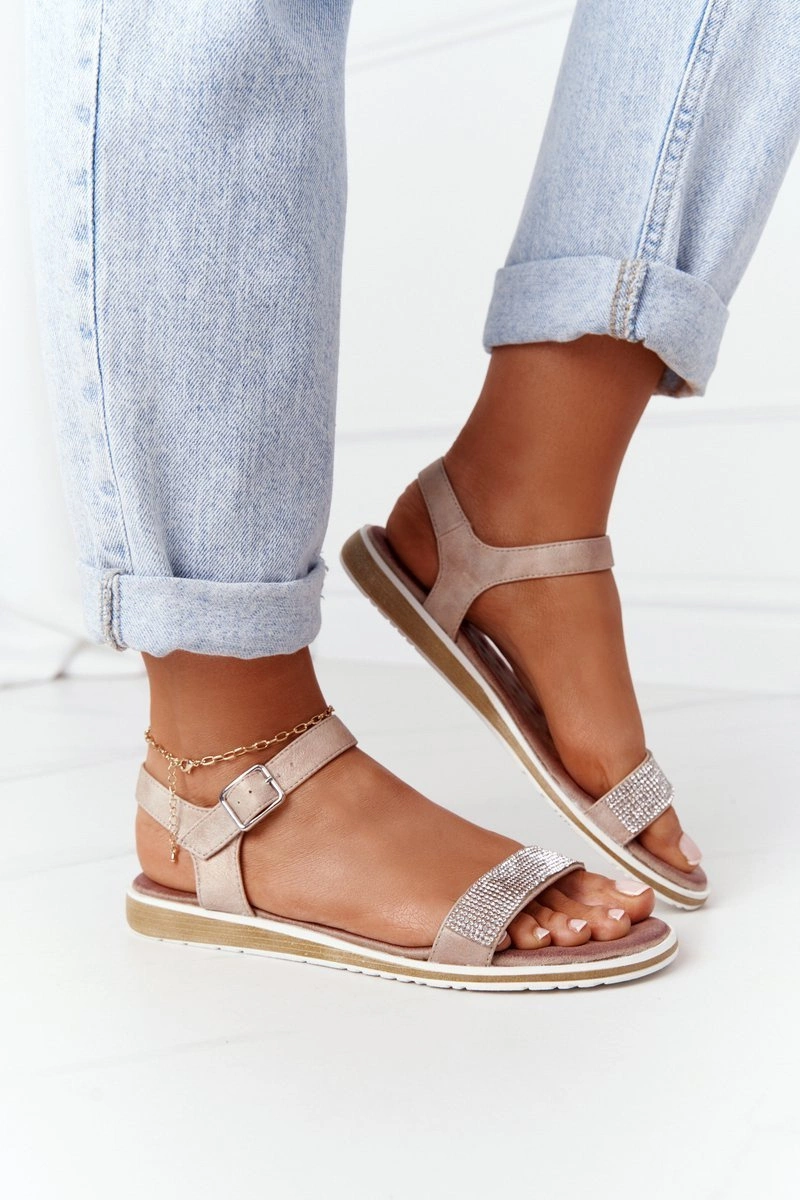 Sandały Z Cyrkoniami S.Barski 701-18 Beżowe