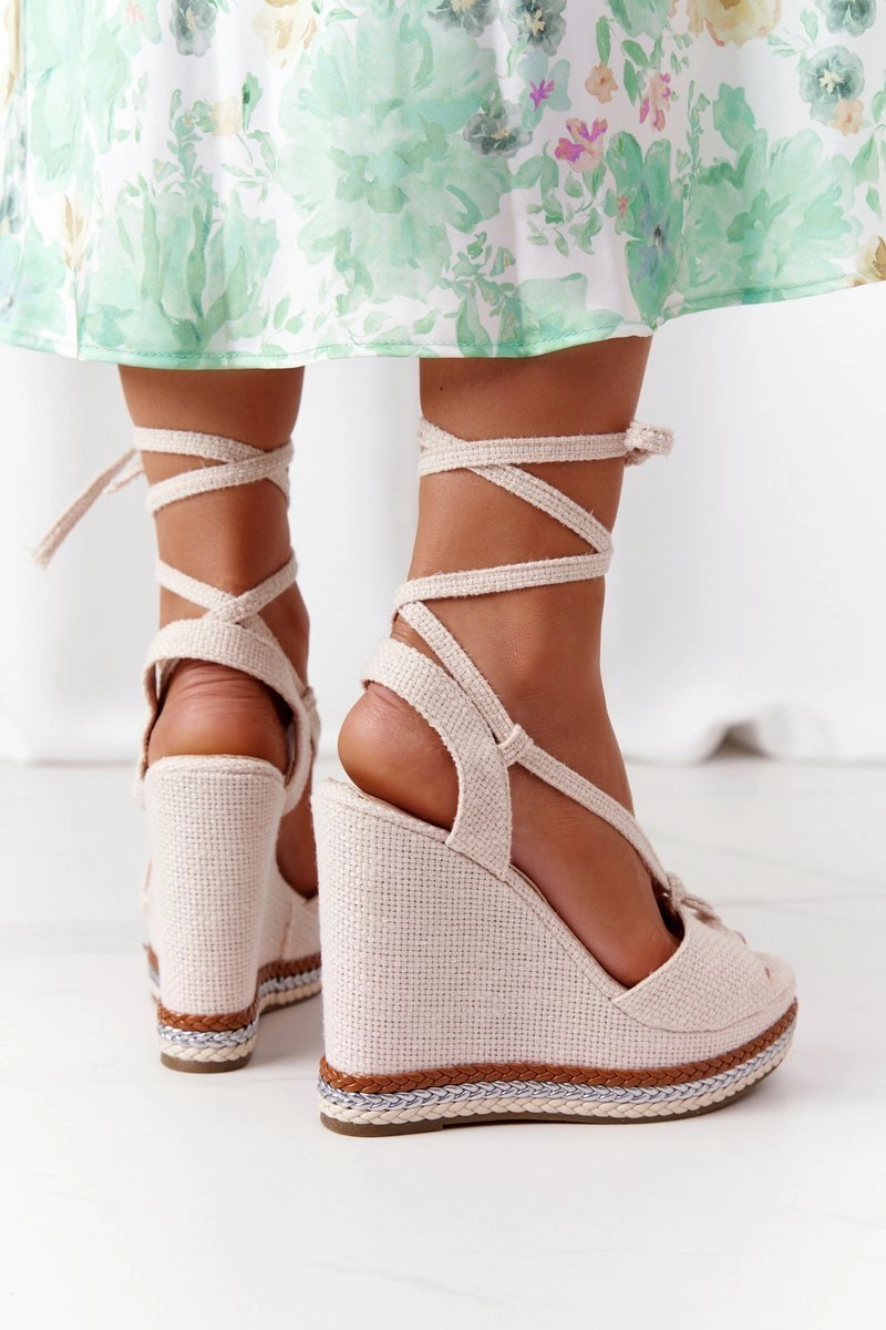 Wiązane Sandały Na Koturnie Beżowe Hawaii