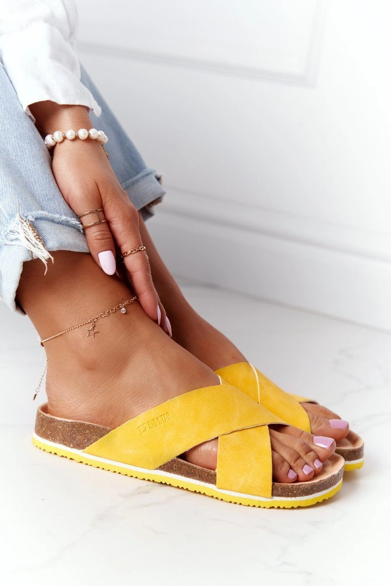 Skórzane Profilowane Klapki Big Star HH274596 Żółte