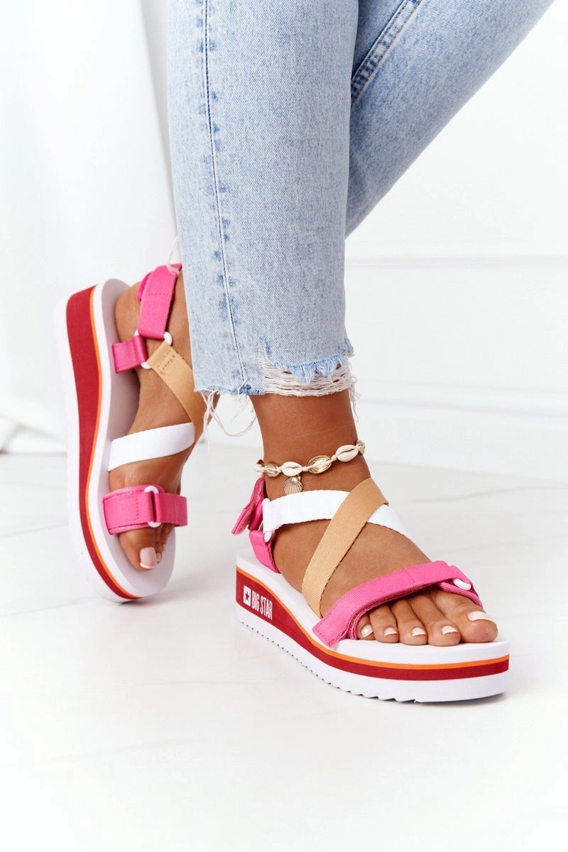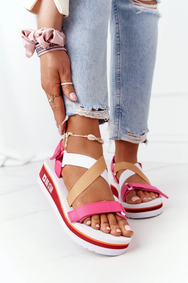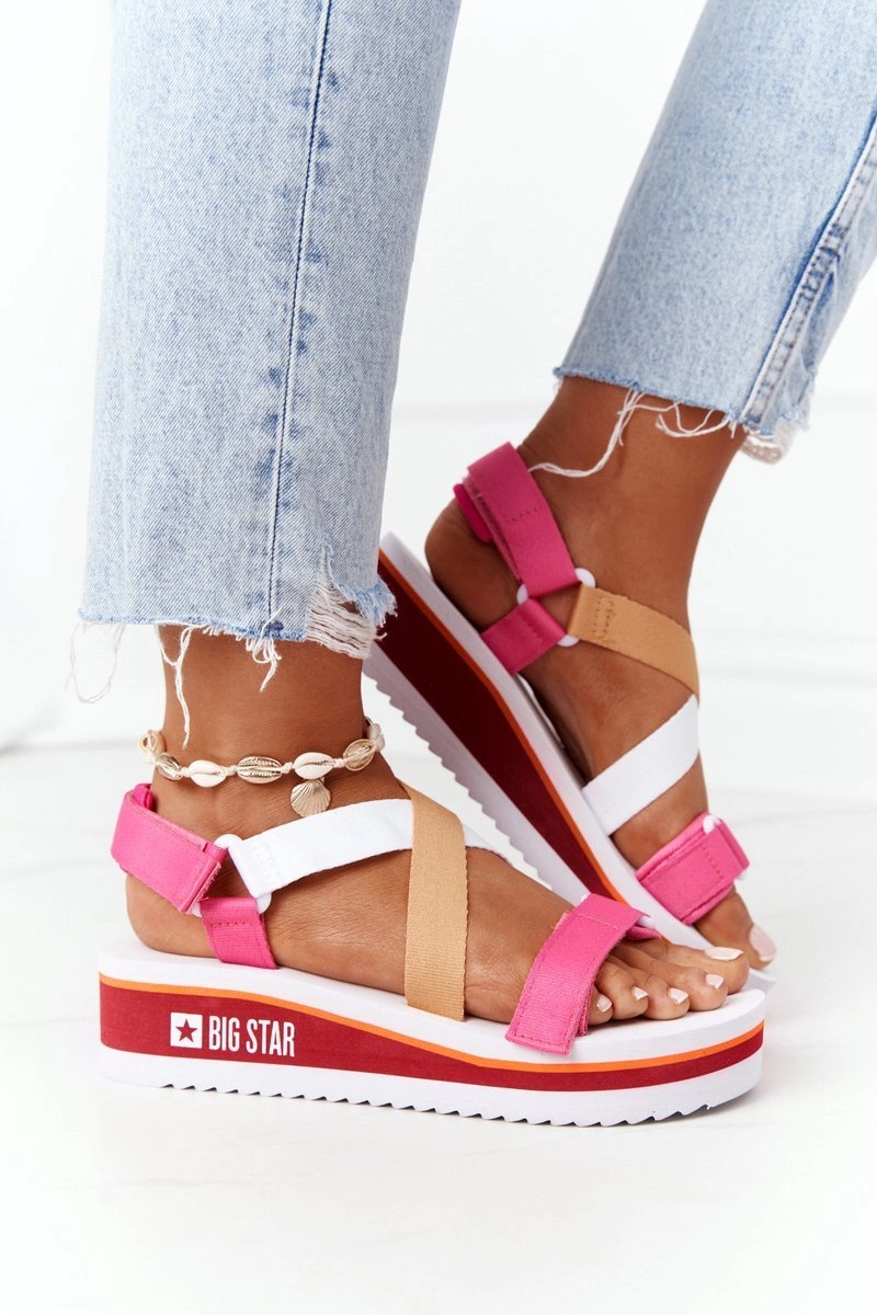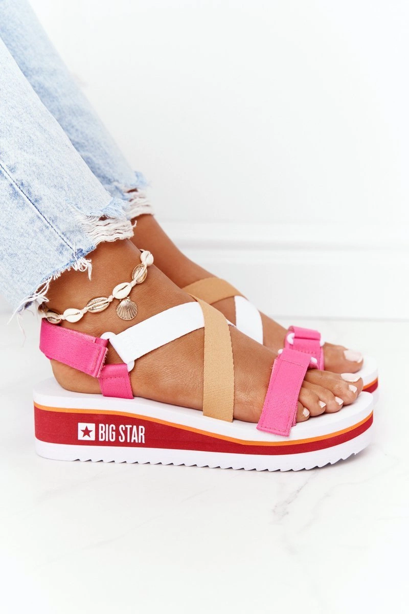 Piankowe Sandały Na Koturnie Big Star HH274A083 Różowe