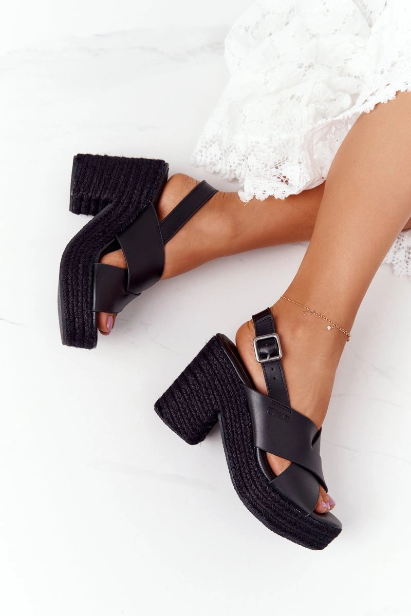 Sandały Na Słupku Z Plecionką Big Star HH274387 Czarne