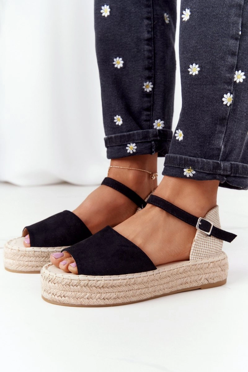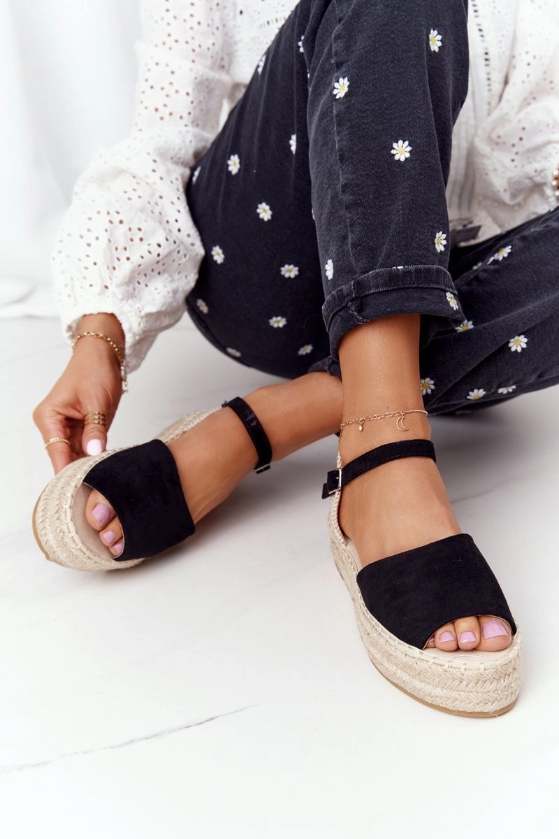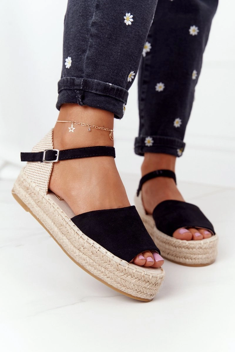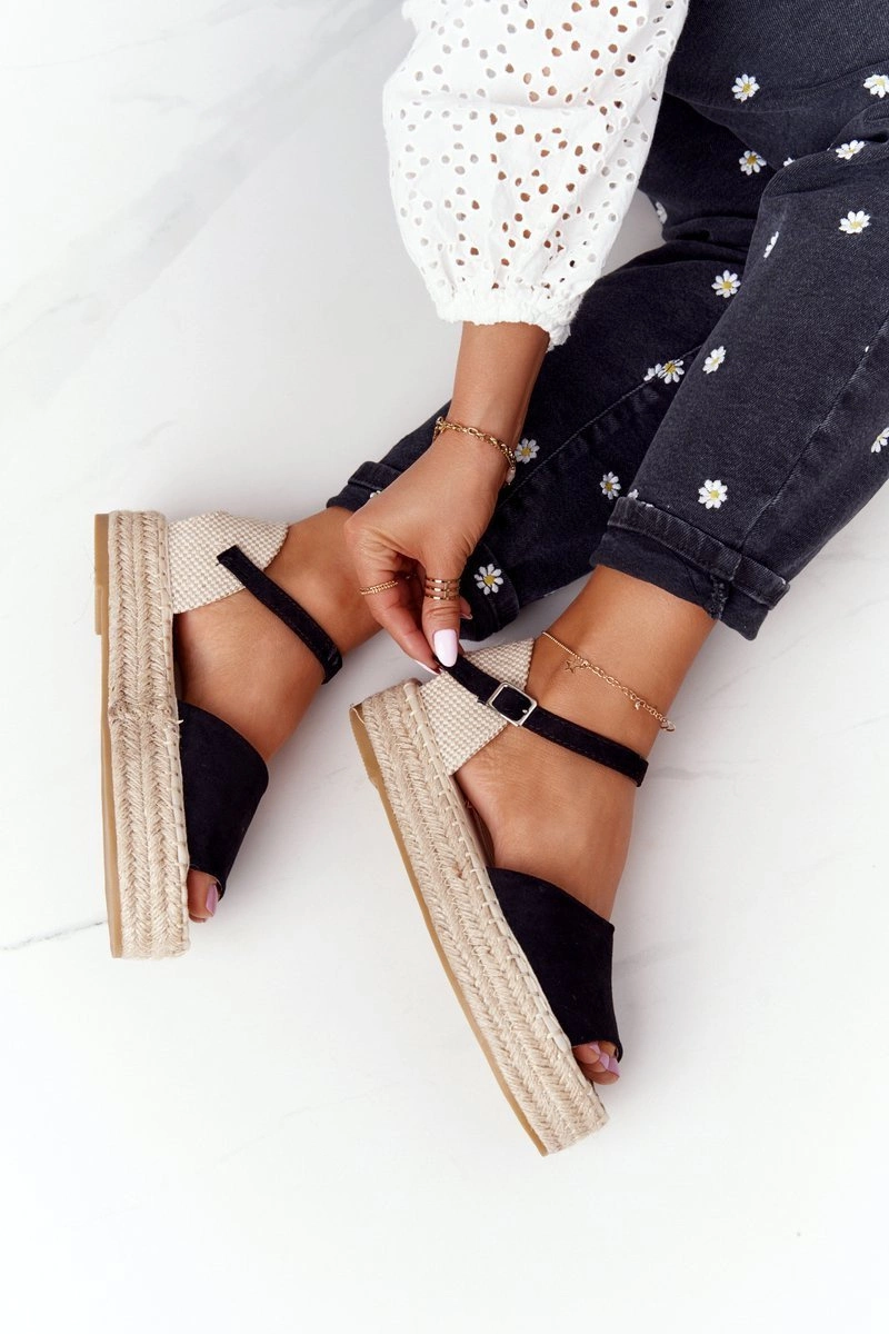 Sandały Na Platformie Z Plecionką Czarne Megara