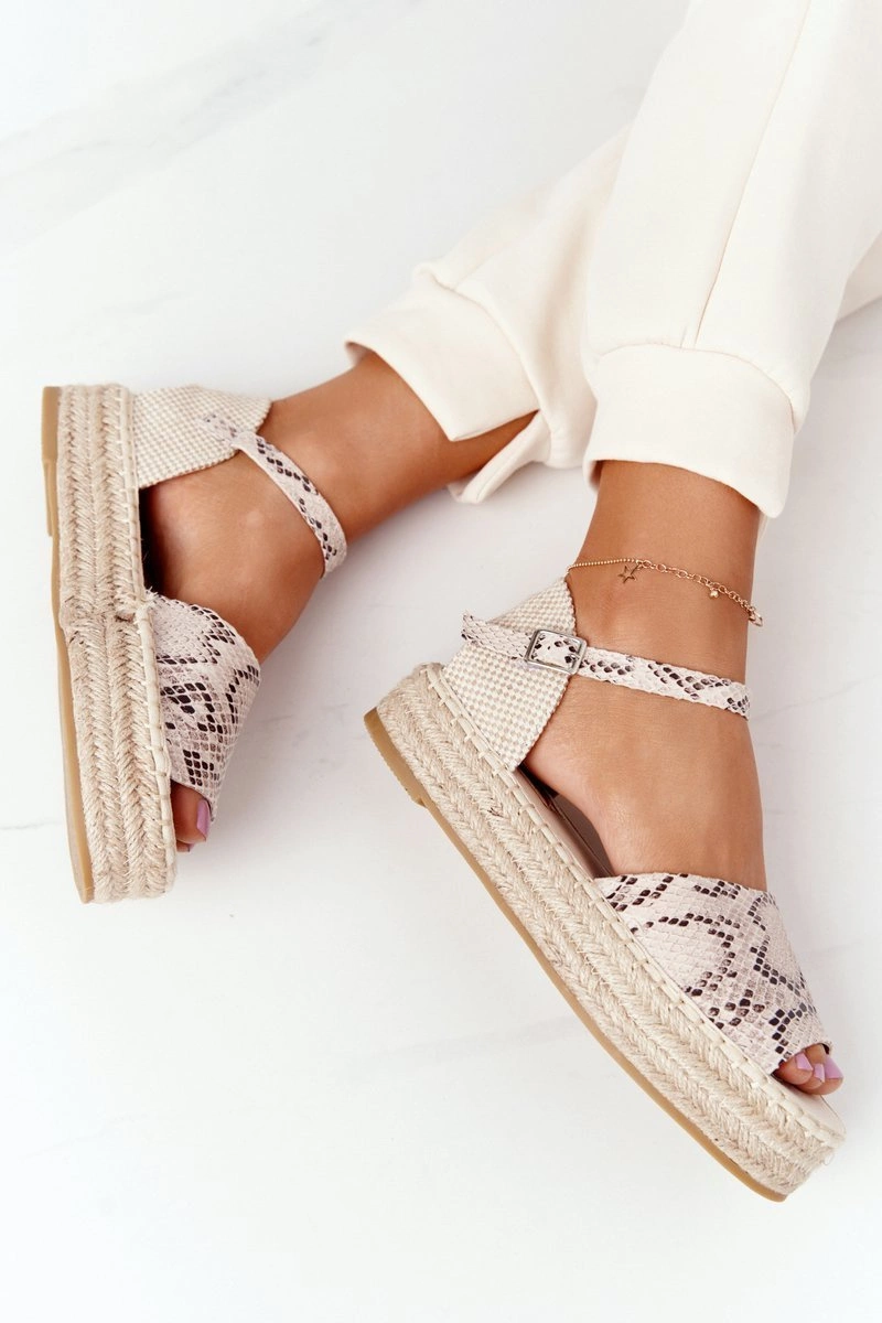 Sandały Na Platformie Z Plecionką Beżowe Wężowy Wzór Megara