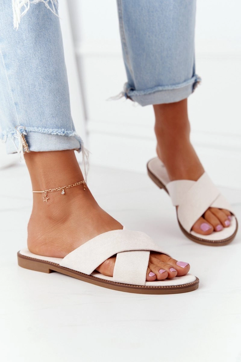 Damskie Welurowe Klapki Beżowe Edesa