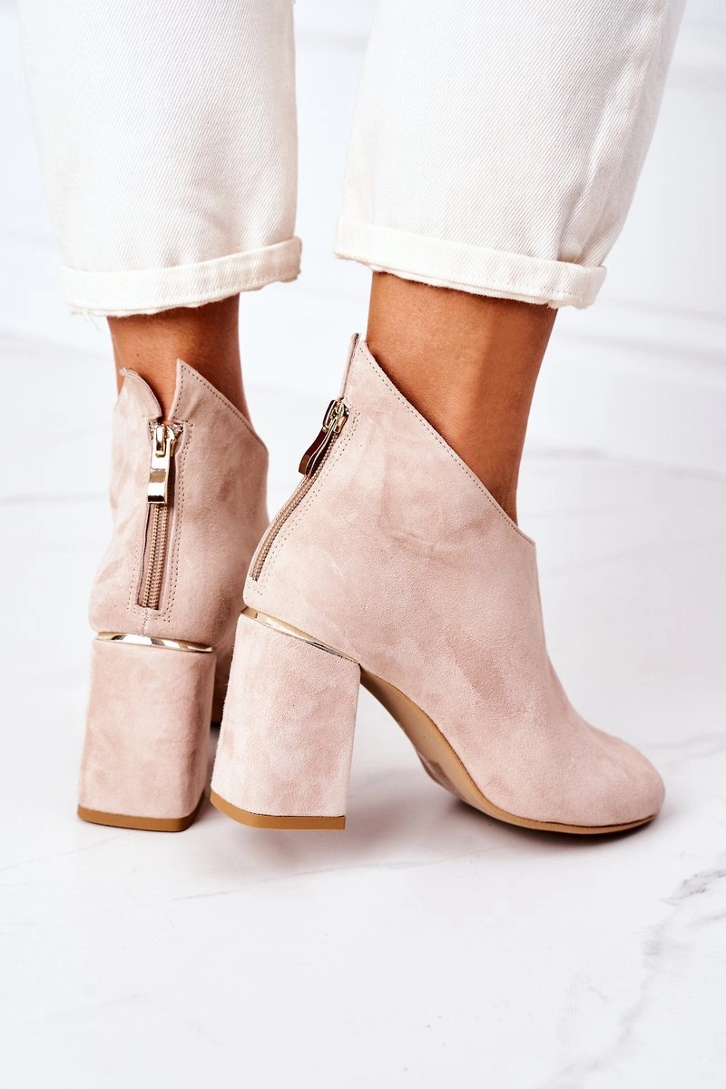 Zamszowe Botki Na Słupku Lewski Shoes 3044 Beżowe