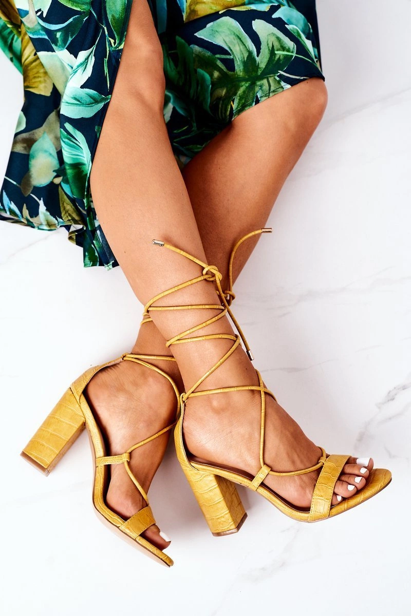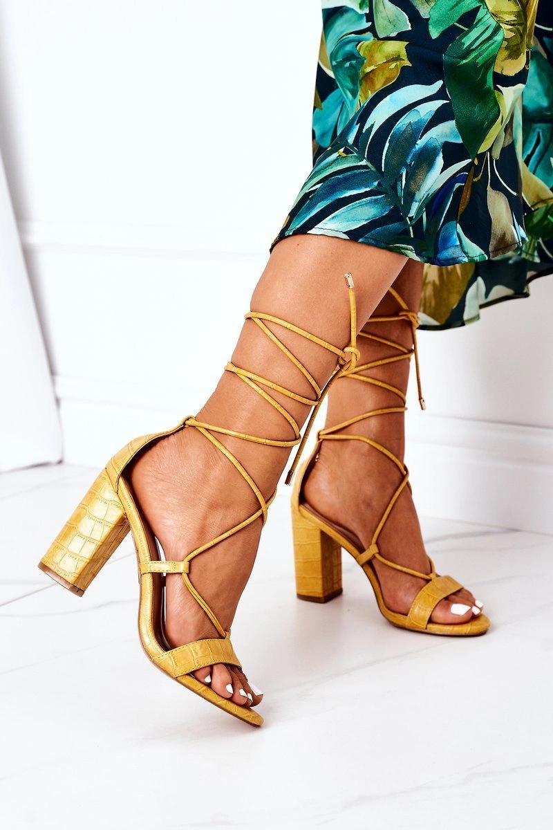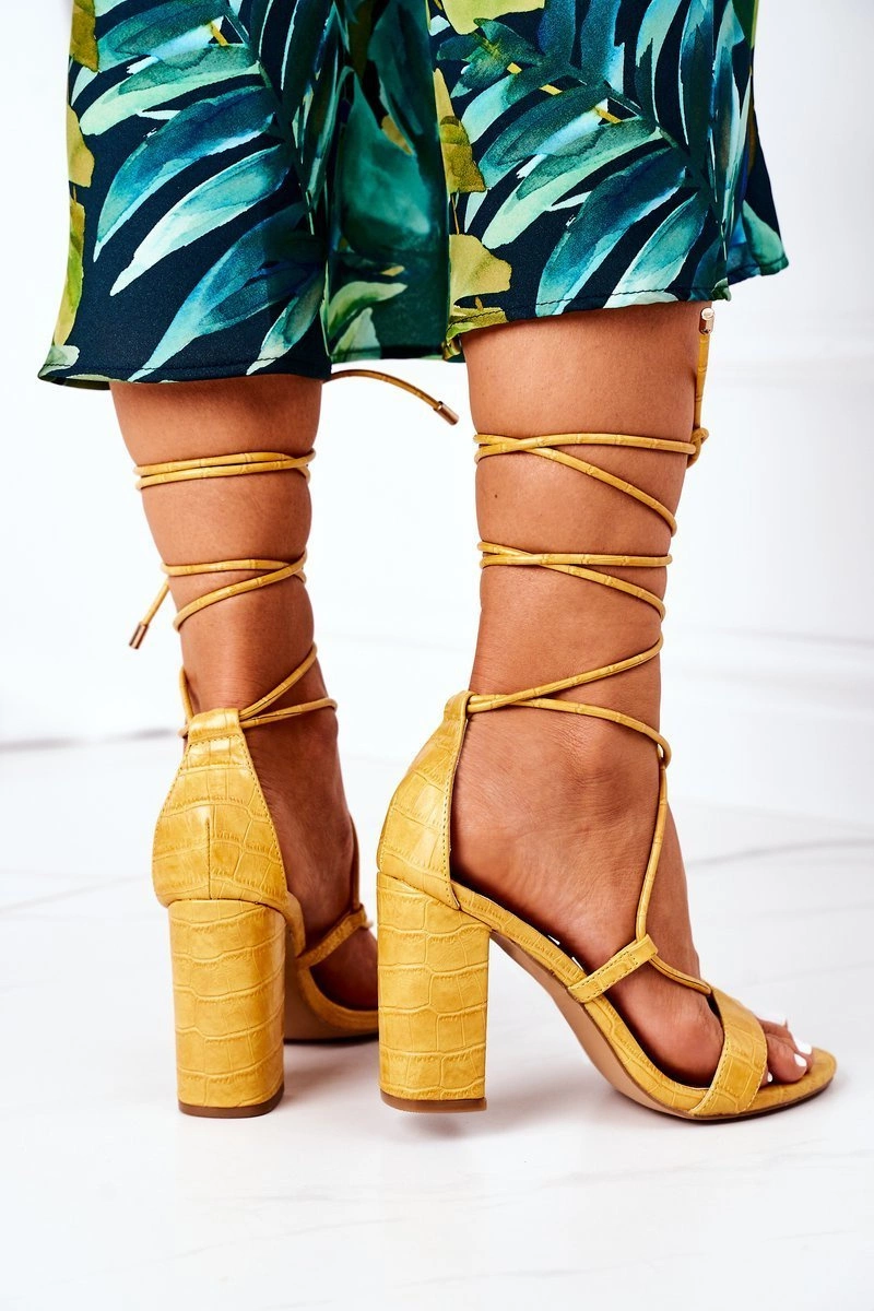 Wiązane Sandały Na Słupku Żółte Catwalk