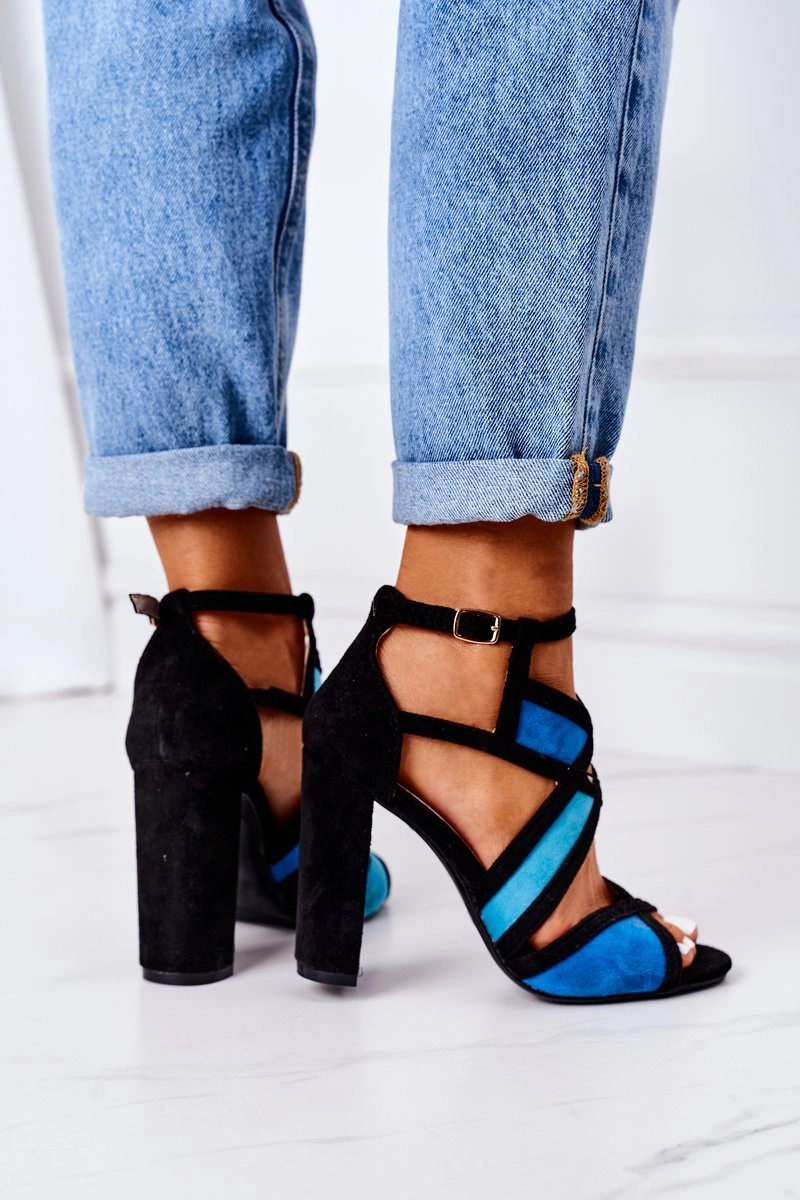 Zamszowe Sandały Na Słupku Czarno-Niebieskie Emolly