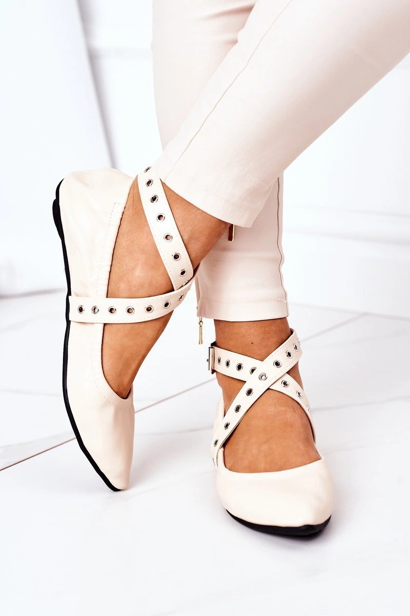 Składane Skórzane Baleriny Lu Boo Beżowe