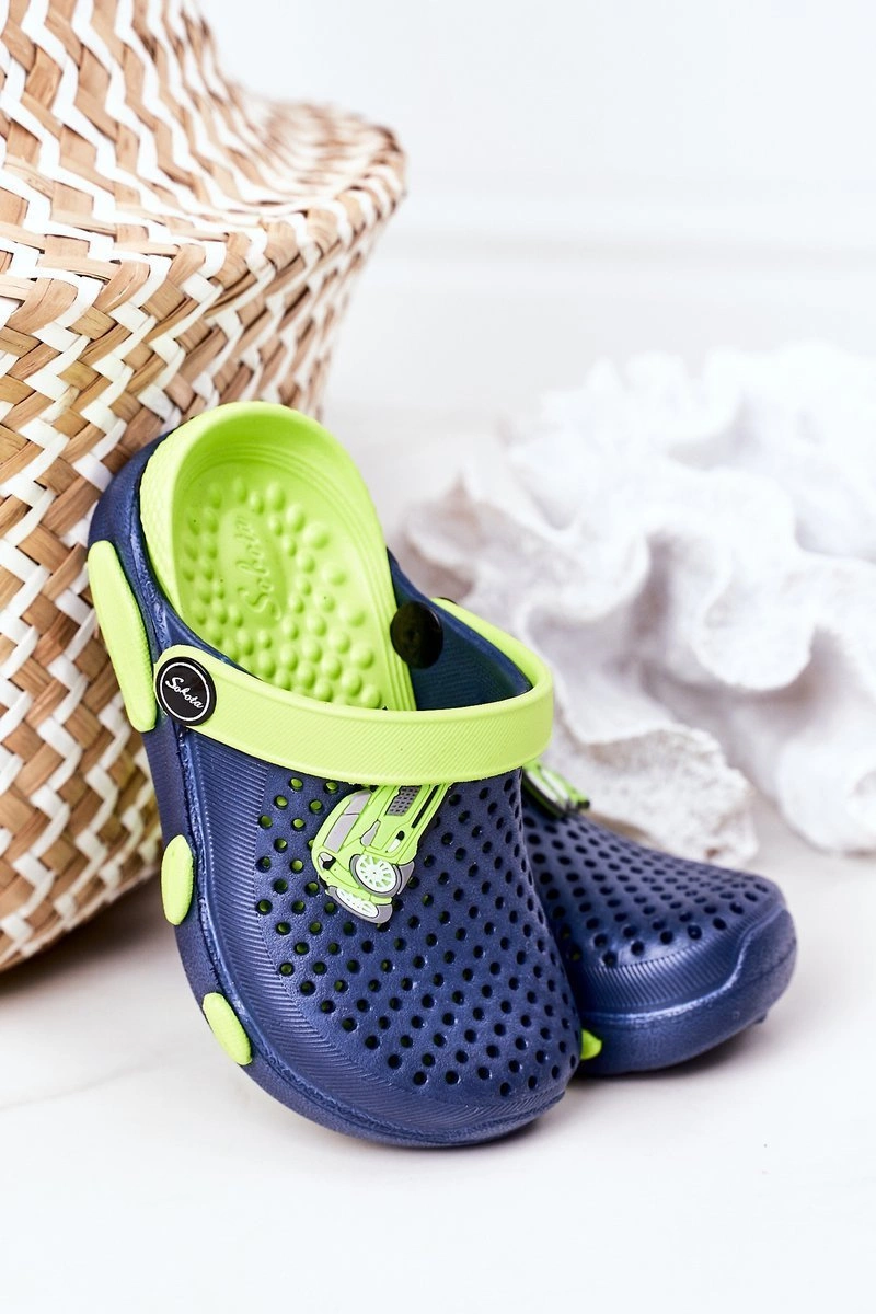 Dziecięce Piankowe Klapki Kroksy Granatowo-Zielone Oliver