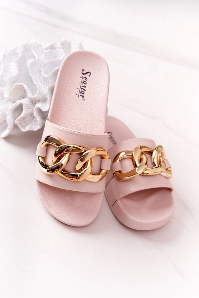 Gumowe Klapki Z Łańcuchem Beżowe One Moment