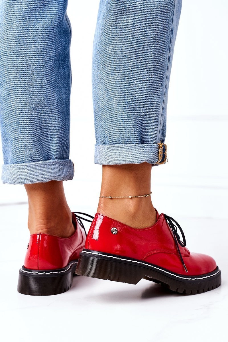 Damskie Skórzane Półbuty Oxfordy Maciejka 04087-08 Czerwone
