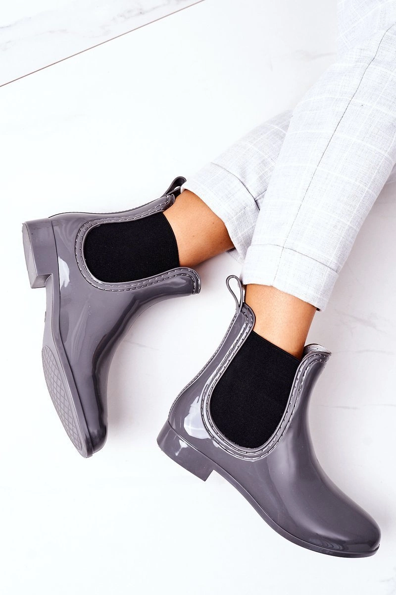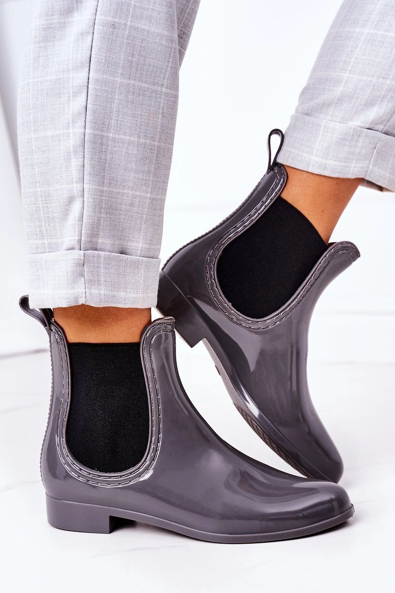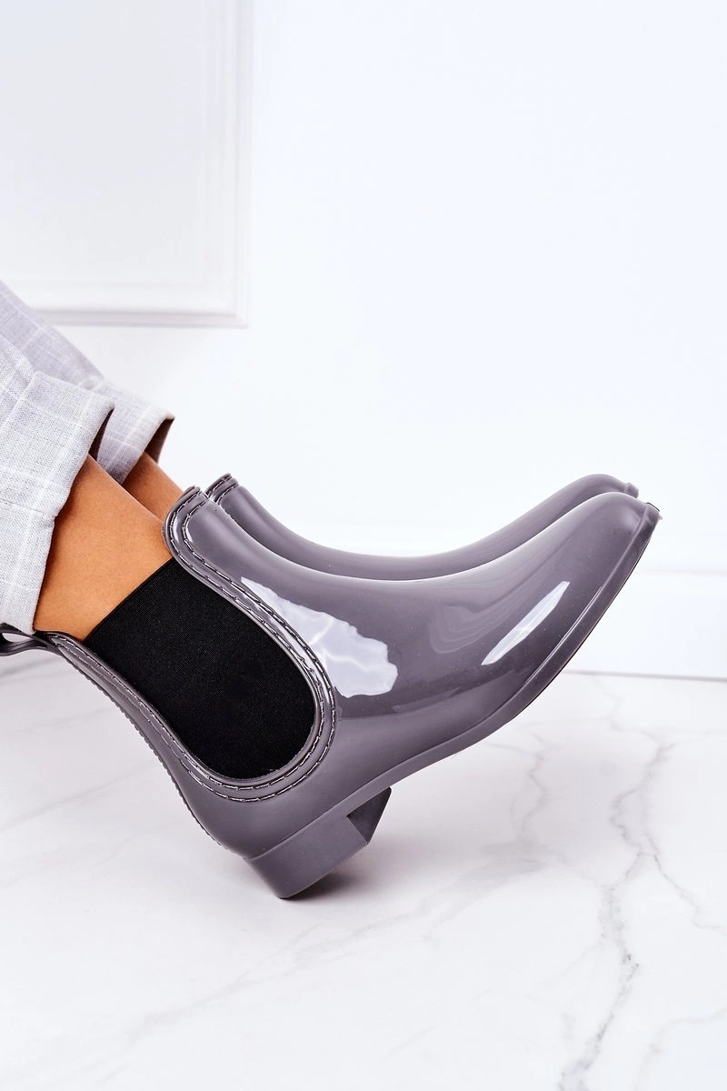 Błyszczące Kalosze Sztyblety Szare Umbrella