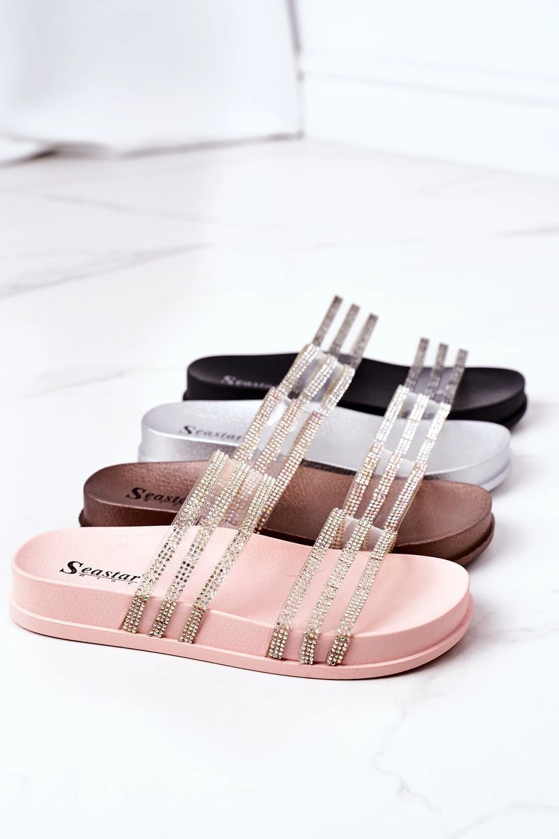 Gumowe klapki damskie ozdobione cyrkoniami. Klapki wykonane są z lekkiego gumowego tworzywa.Przy wyborze rozmiaru prosimy sugerować się tabelą rozmiarów.