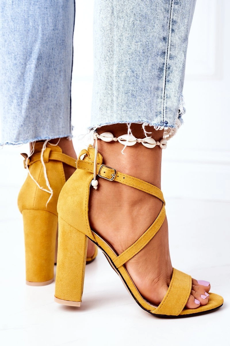 Eleganckie sandały na słupku wykonane z eko zamszu. Miękka wkładka z eko skóry oraz wygodny obcas zapewnią komfort. Przy wyborze rozmiaru prosimy sugerować się tabelą rozmiarów.