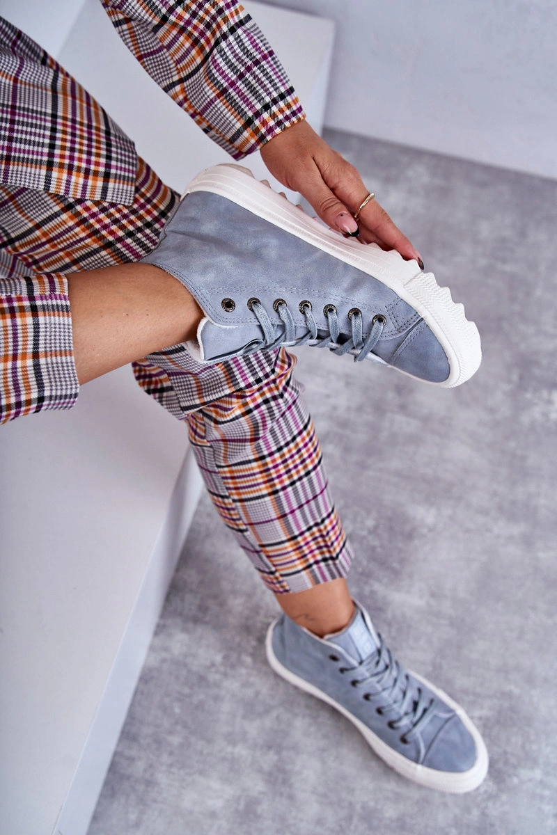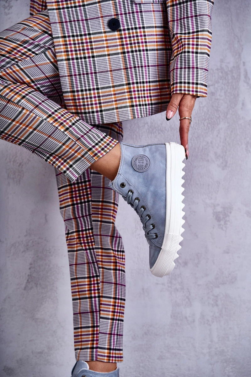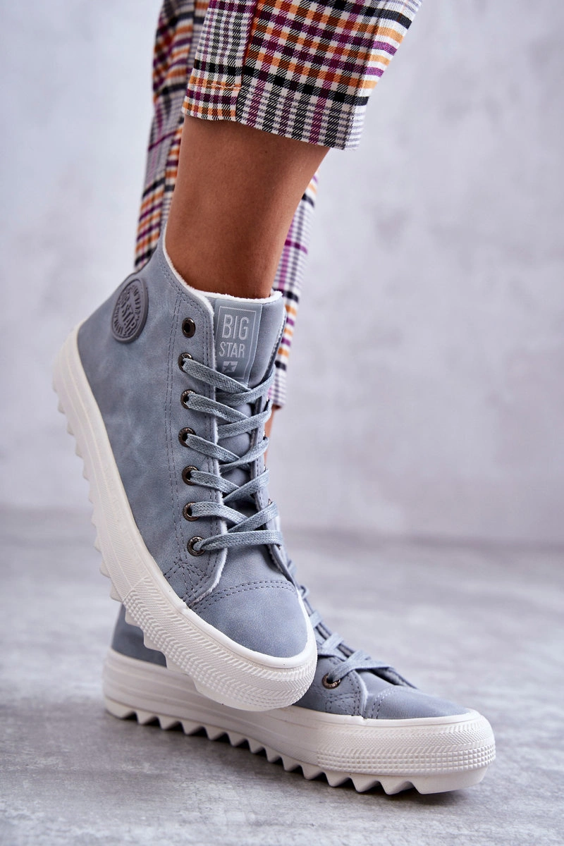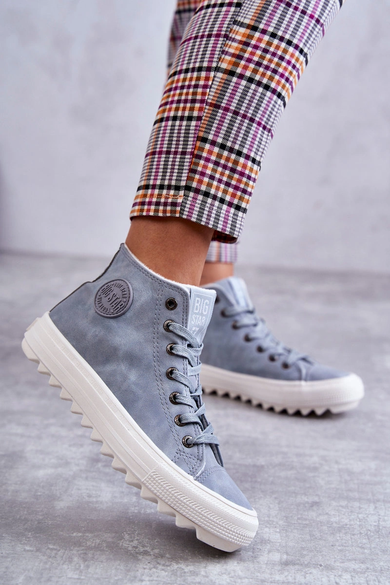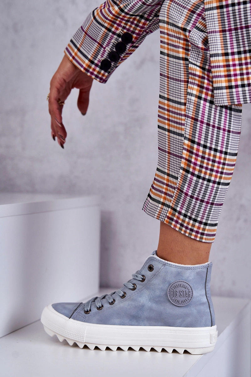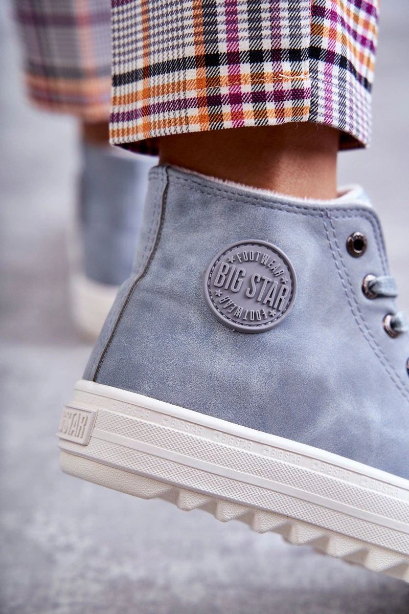 Damskie Skórzane Ocieplane Trampki Big Star EE274115 Jasnoniebieskie