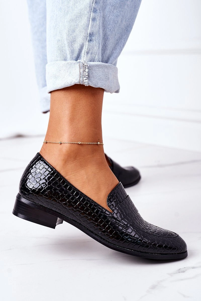 Lakierowane Mokasyny W Zwierzęcy Wzór Czarne Lenie