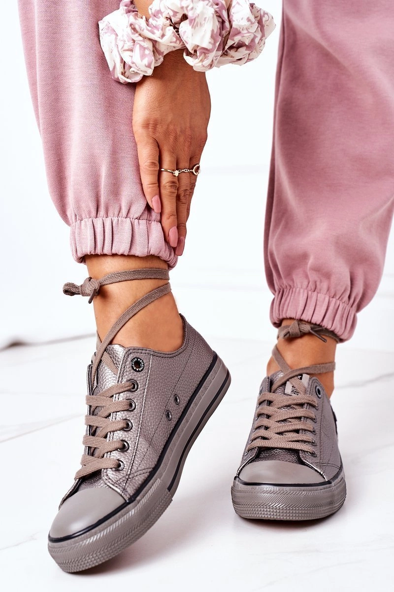 Damskie Skórzane Trampki BIG STAR II274003 Grafitowe