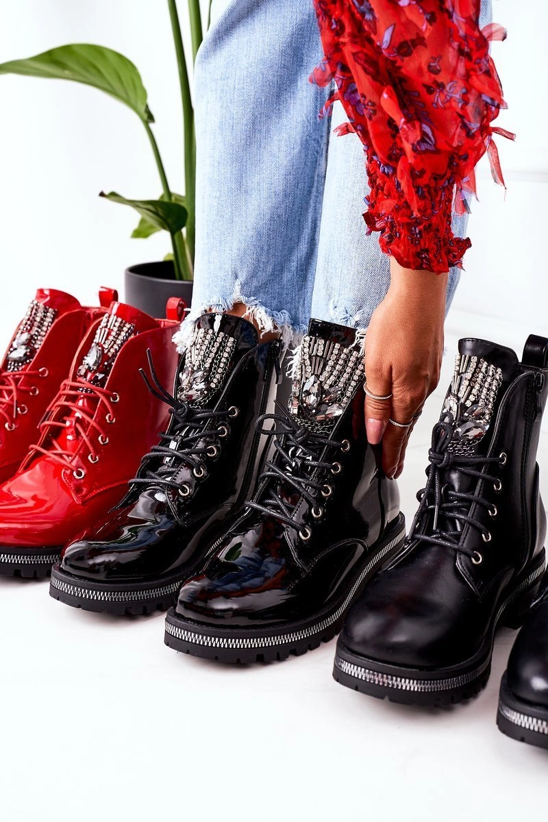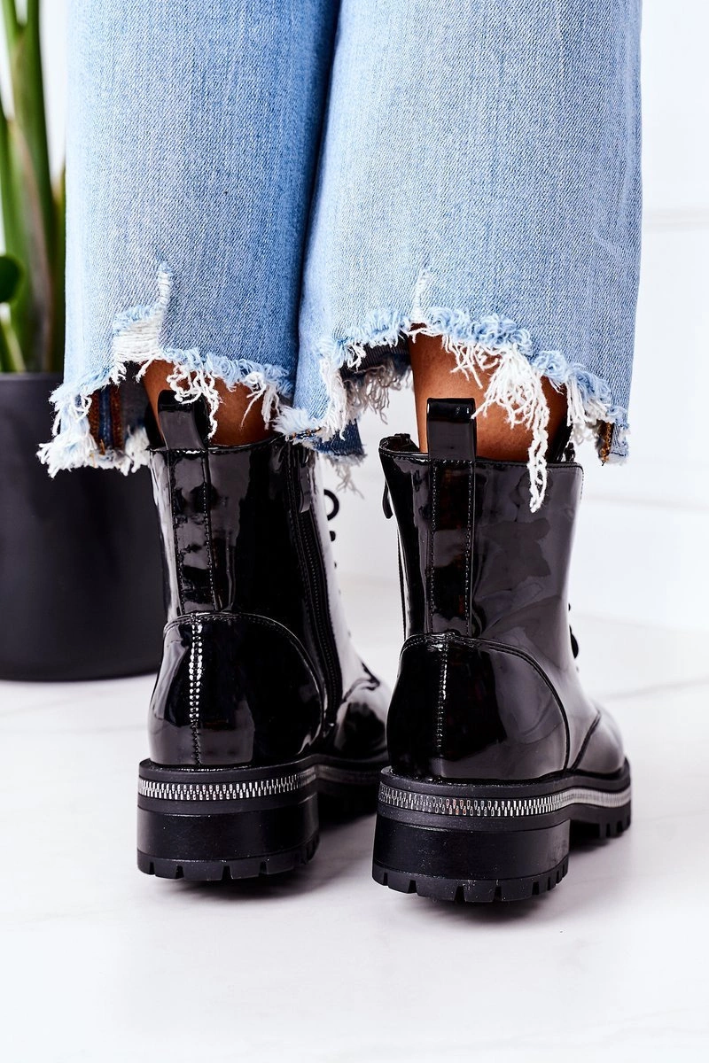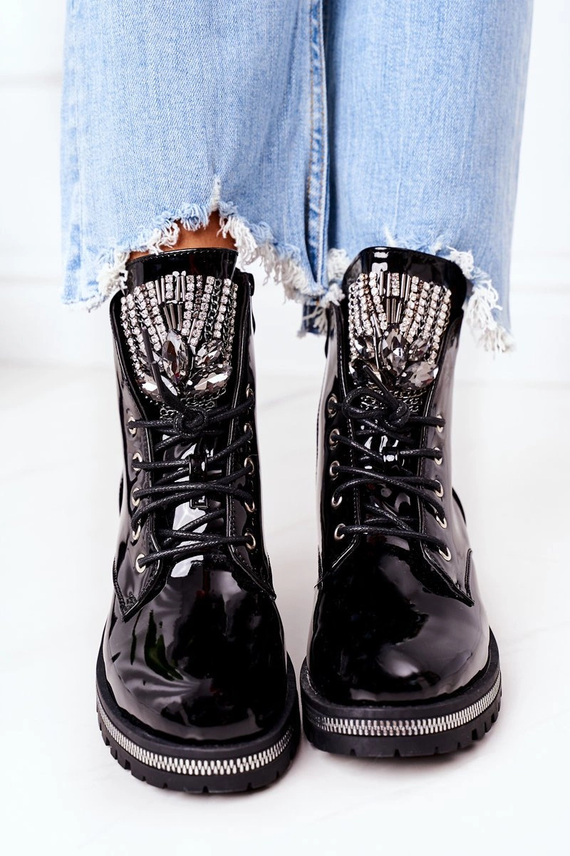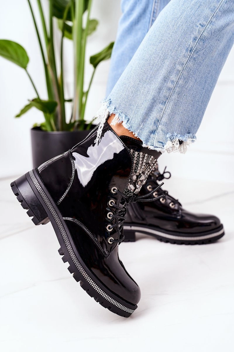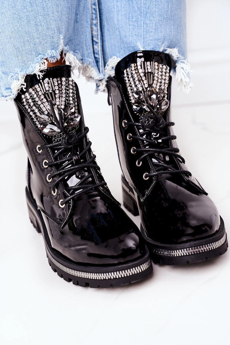 Lakierowane Ocieplane Workery Z Cyrkoniami Czarne Attention