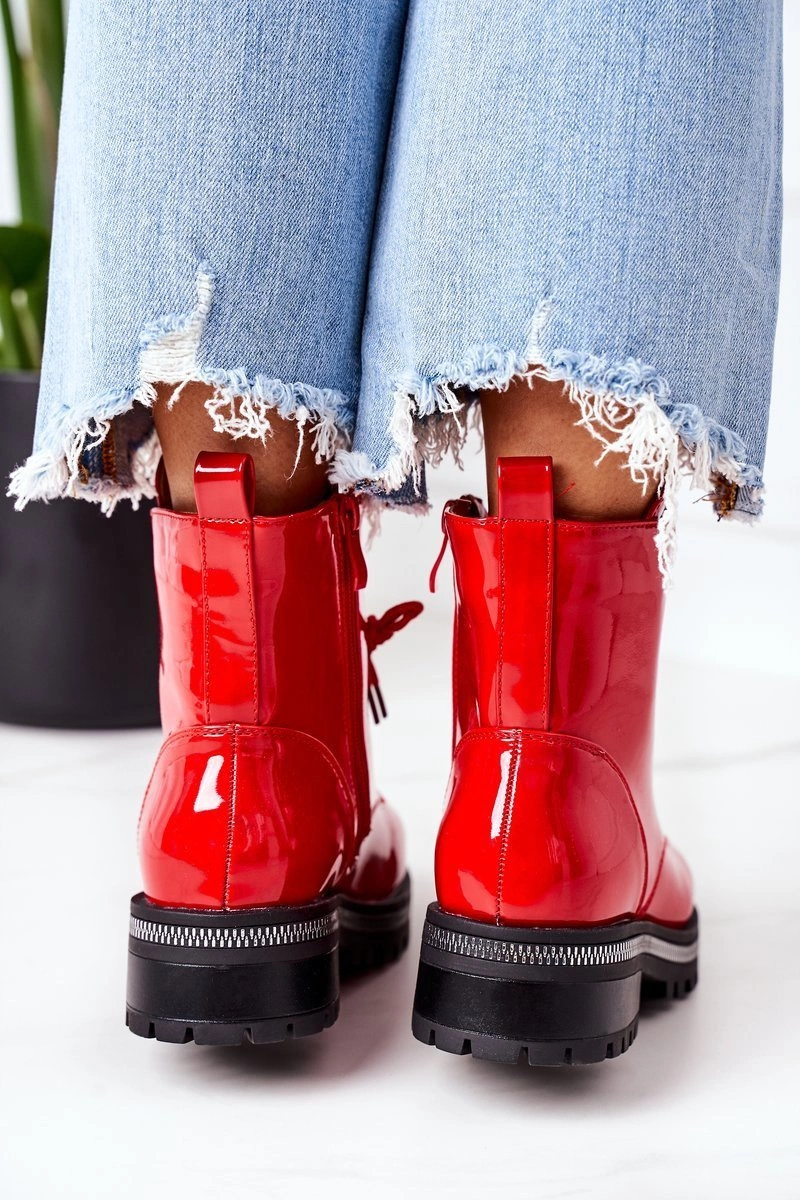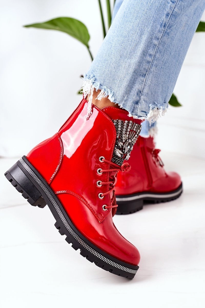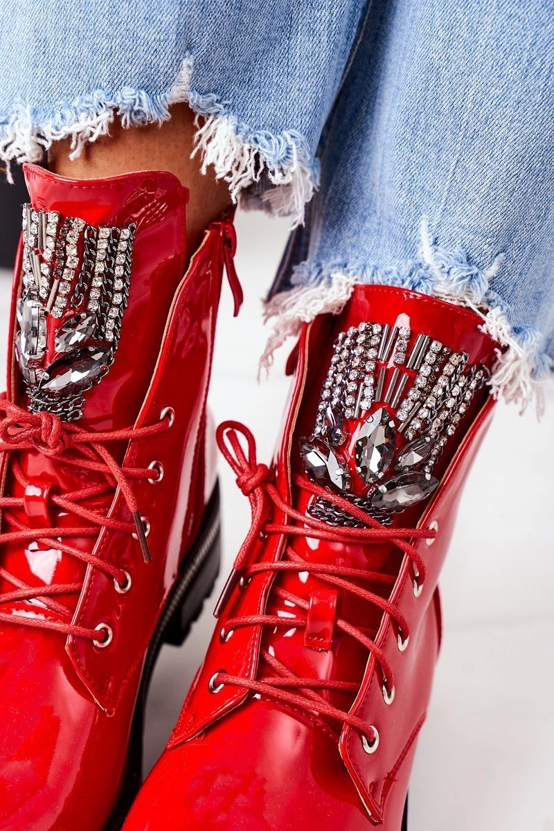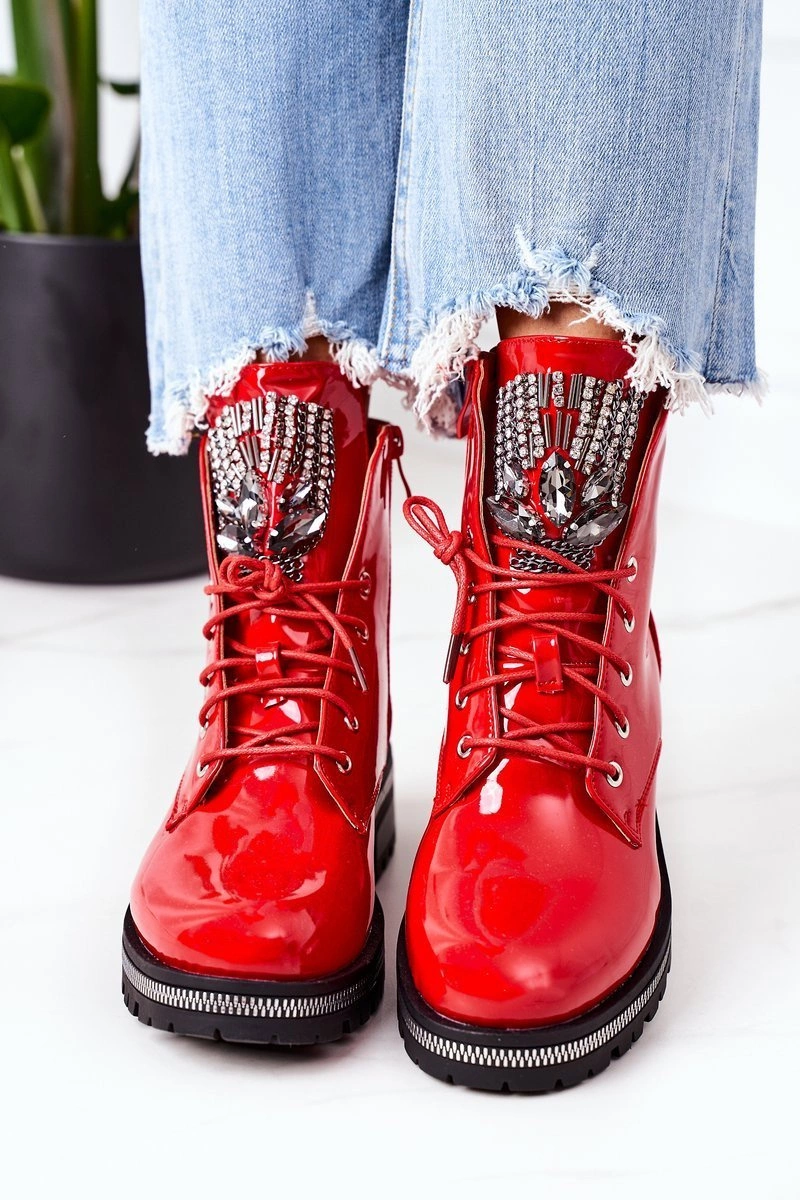 Lakierowane Ocieplane Workery Z Cyrkoniami Czerwone Attention