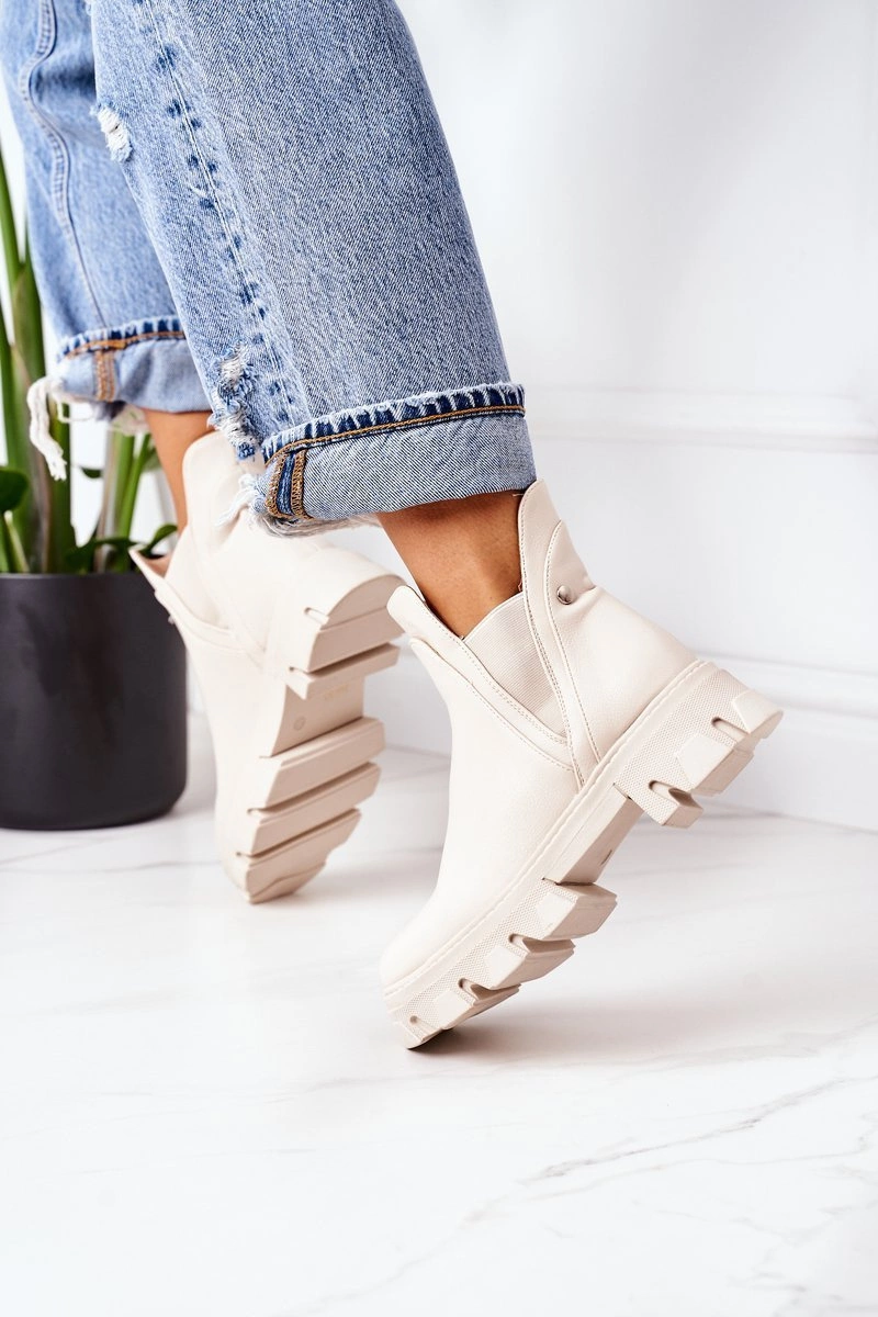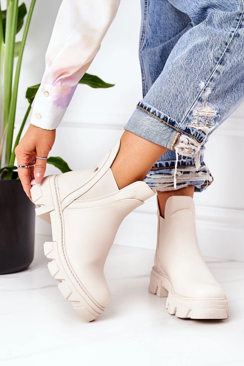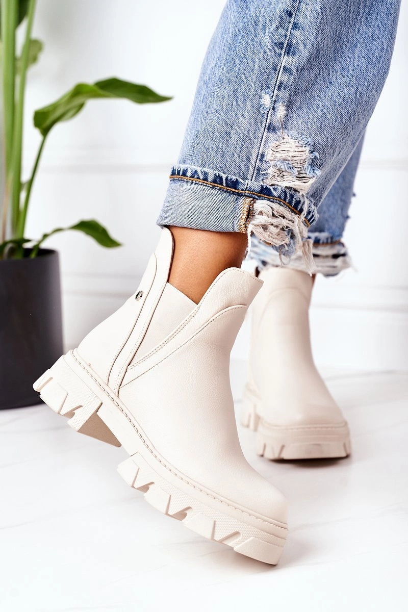 Ocieplane Botki Sztyblety Beżowe Hashtag