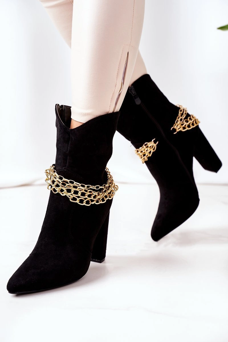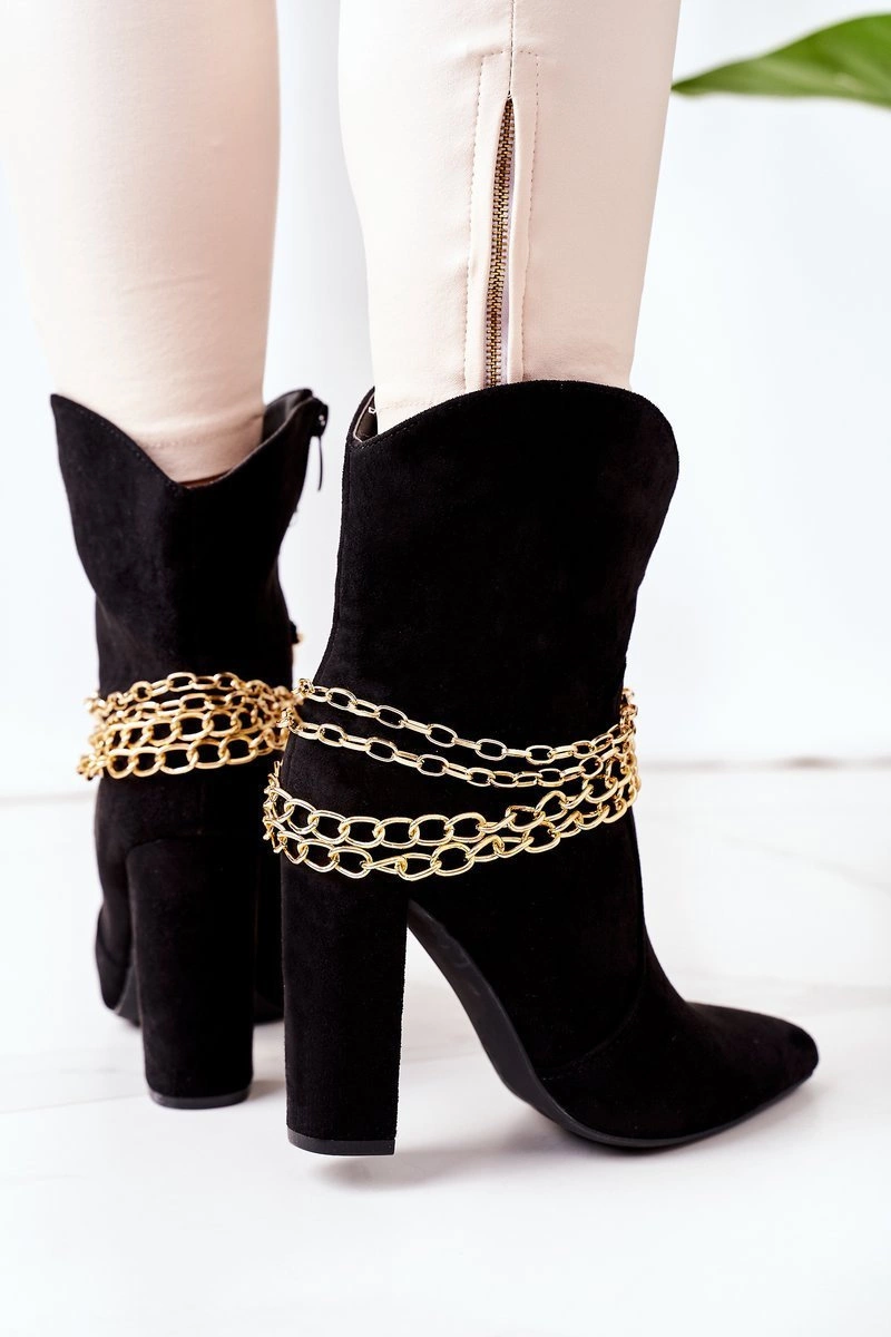Ocieplane Botki Na Słupku Czarne Good Impression