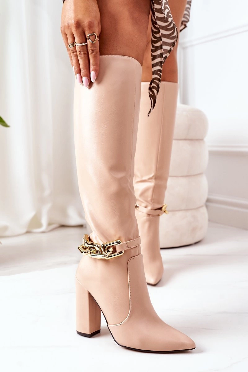 Ocieplane Kozaki Na Słupku Z Łańcuchem Nude Franti