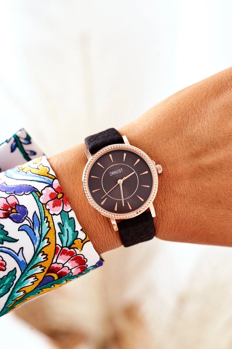 Zegarek Na Skórzanym Pasku Bez Niklu ERNEST Czarny