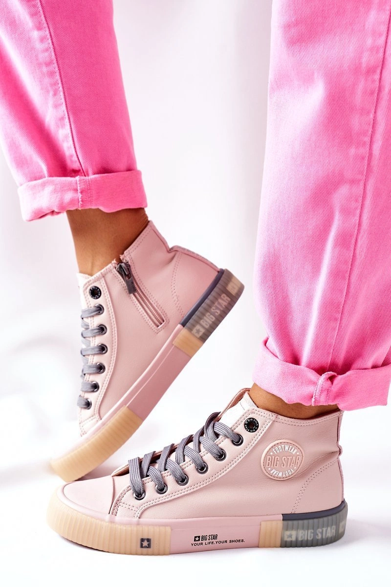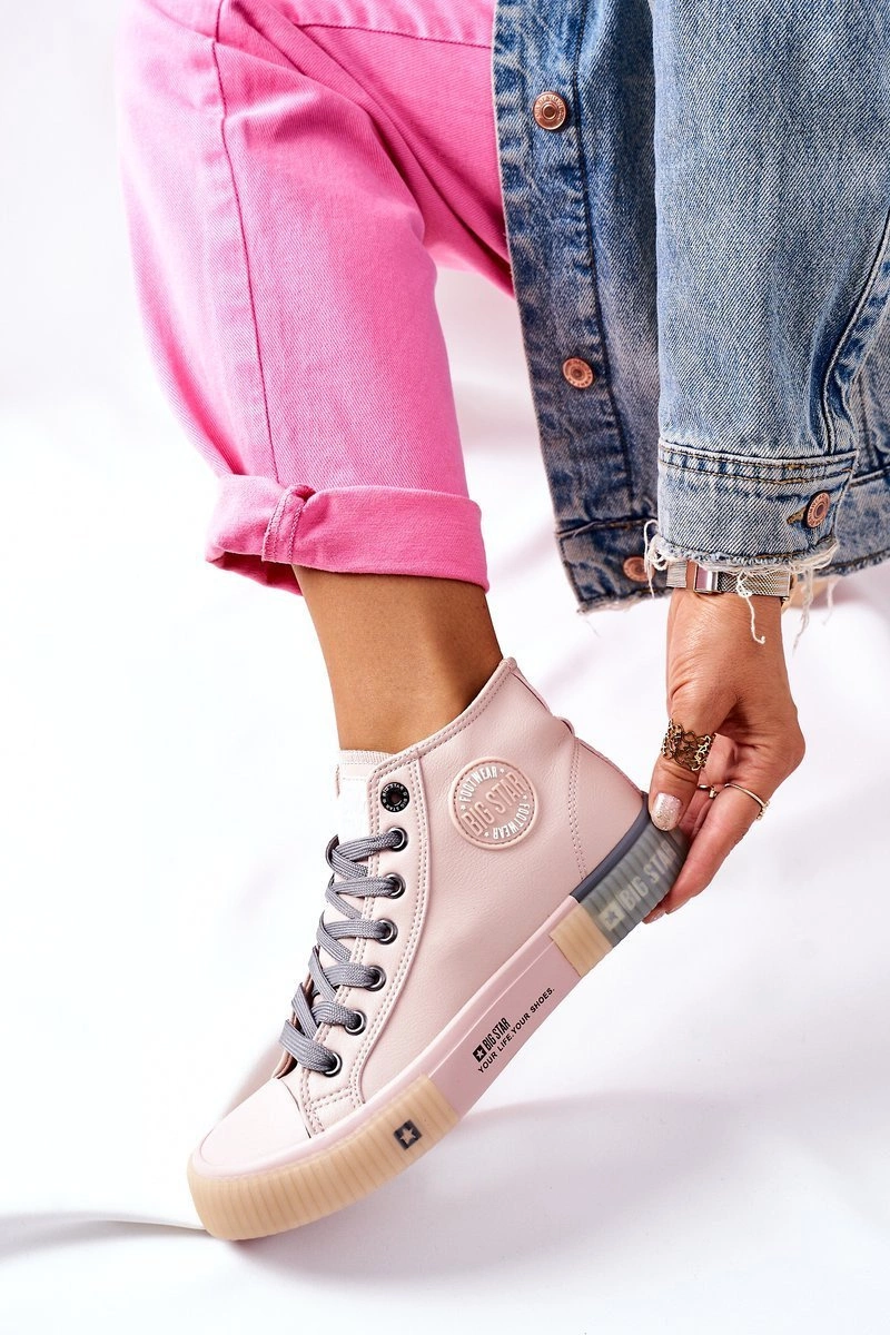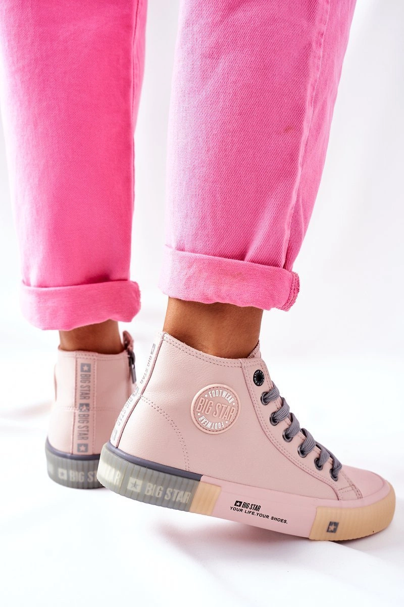 Skórzane Wysokie Trampki Big Star II274138 Różowe