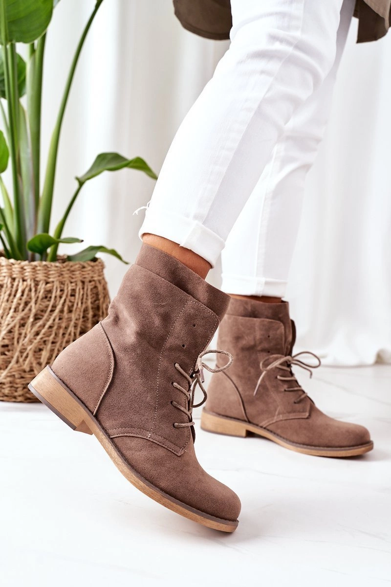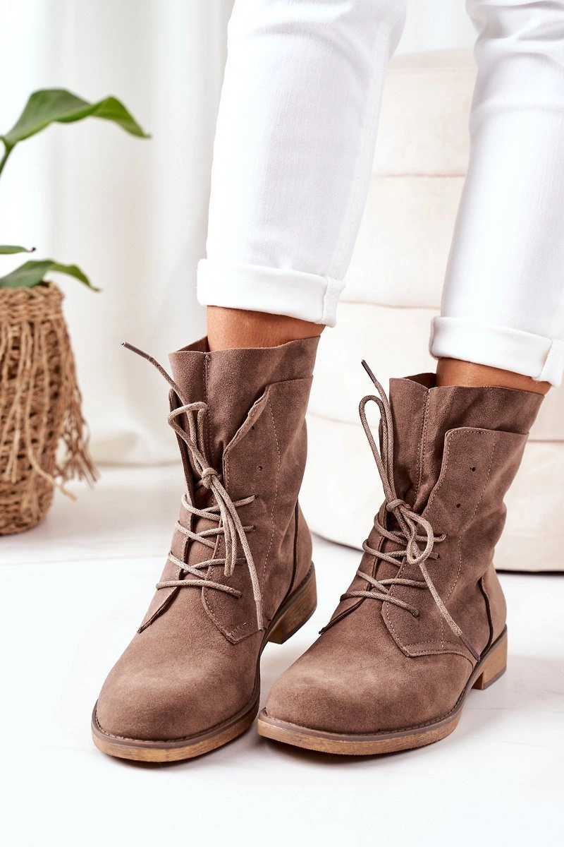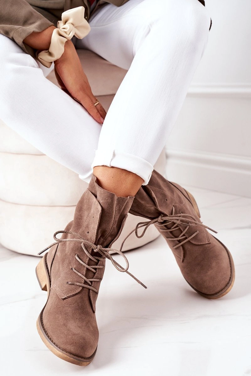 Botki Z Podwójną Cholewką Jasny Brąz Violetta