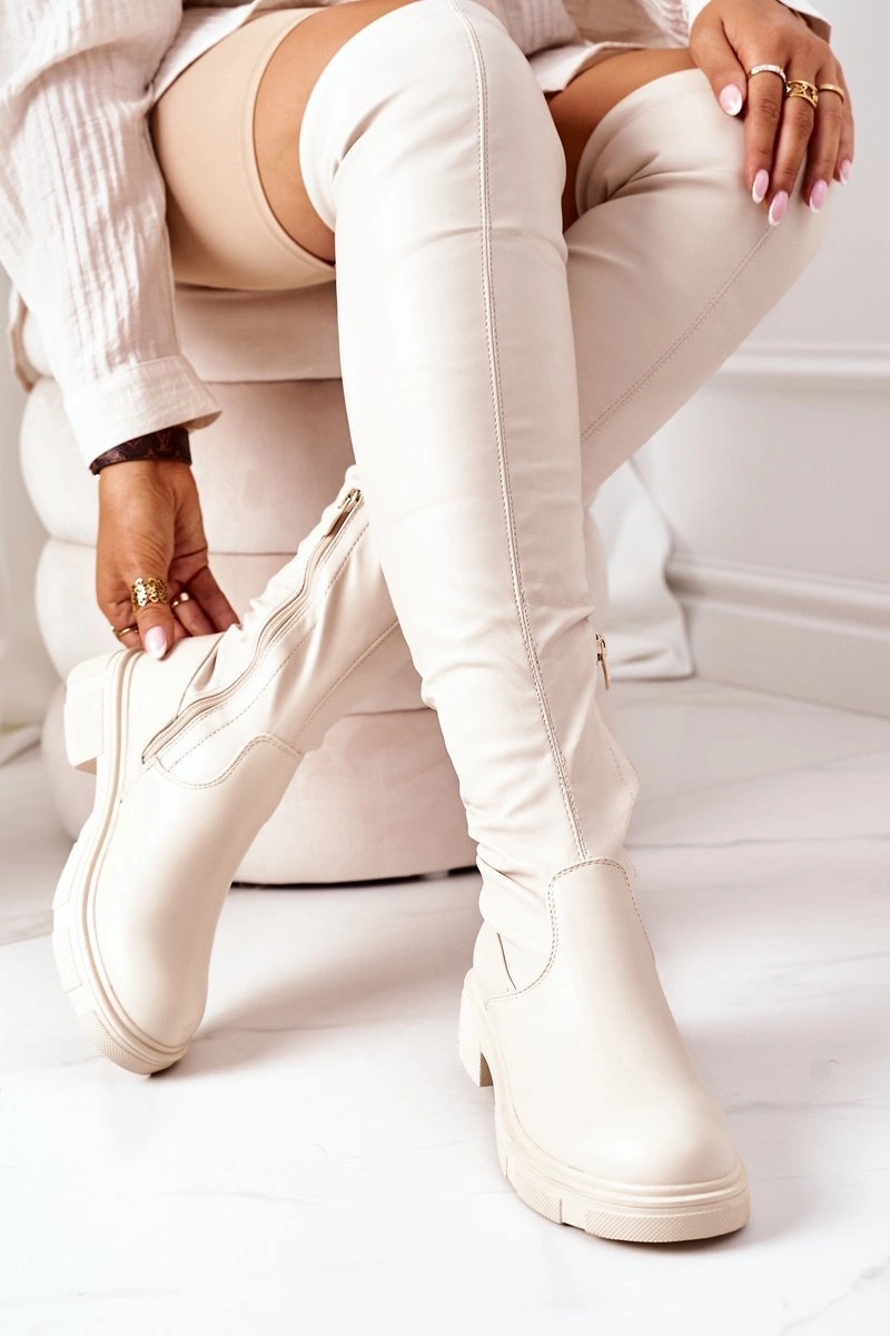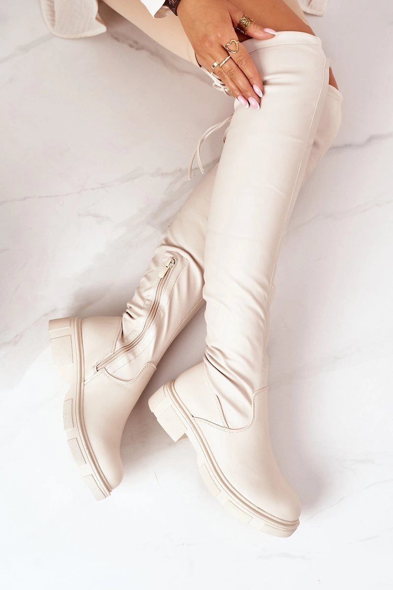 Skórzane Kozaki Za Kolano Beżowe Selina