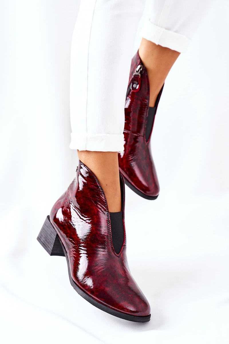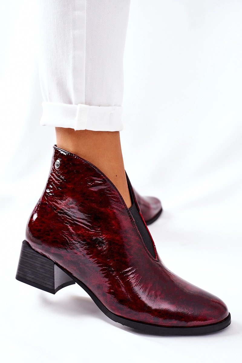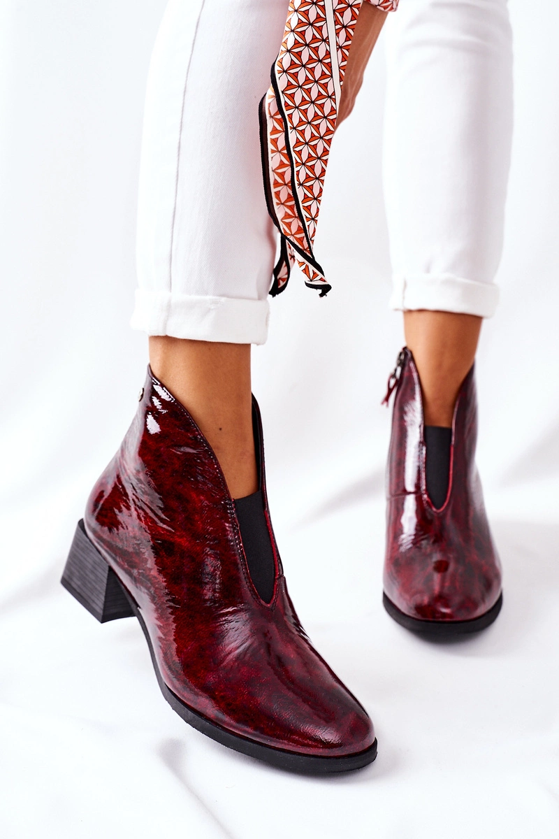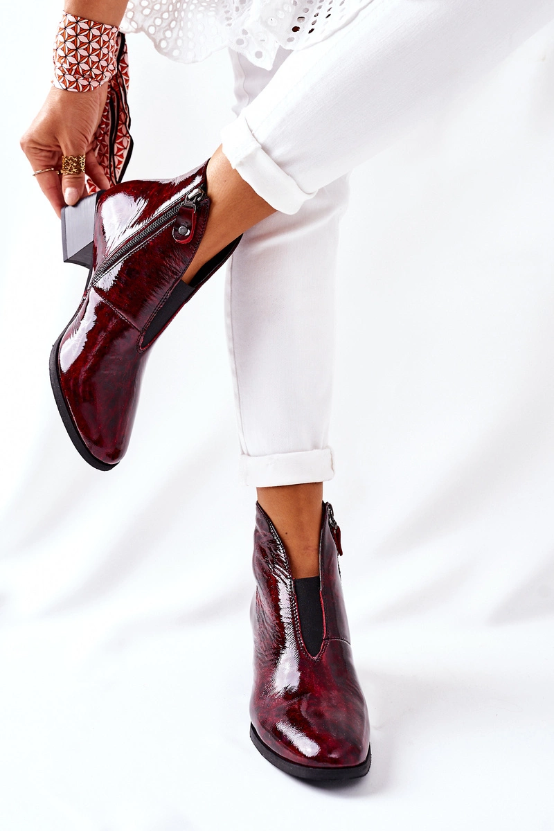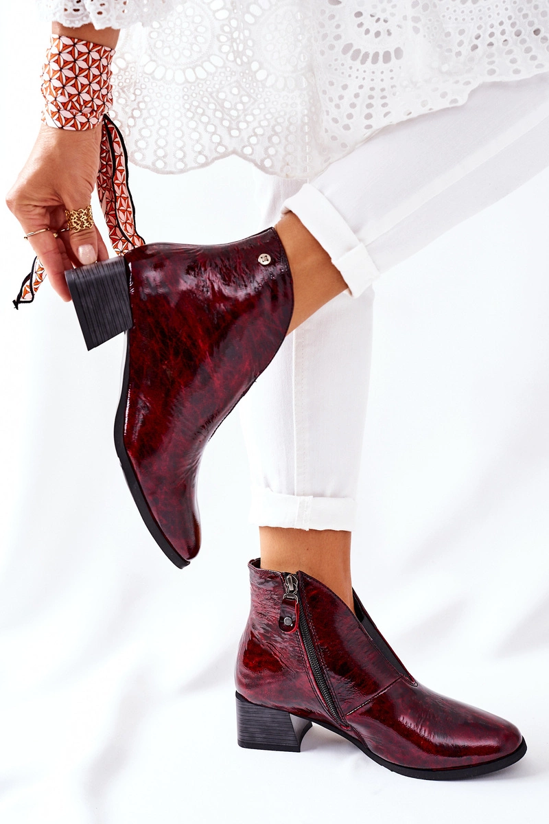 Skórzane Ocieplane Botki Na Obcasie Maciejka 04777-23 Bordo