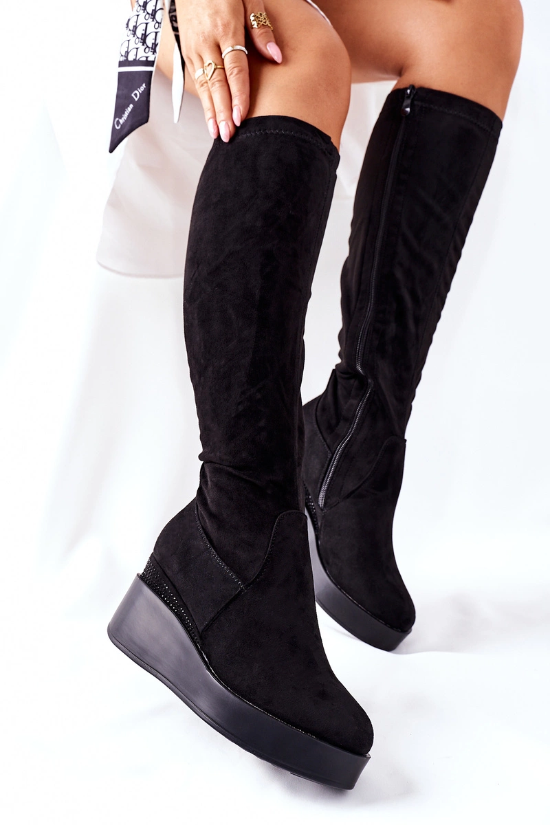Zamszowe Kozaki Na Koturnie S. Barski Czarne Celina