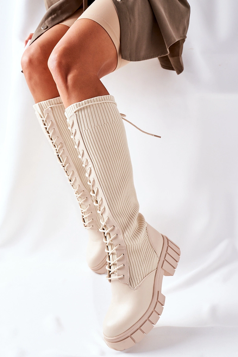 Wysokie Kozaki ze Skarpetą Beżowe Monteri
